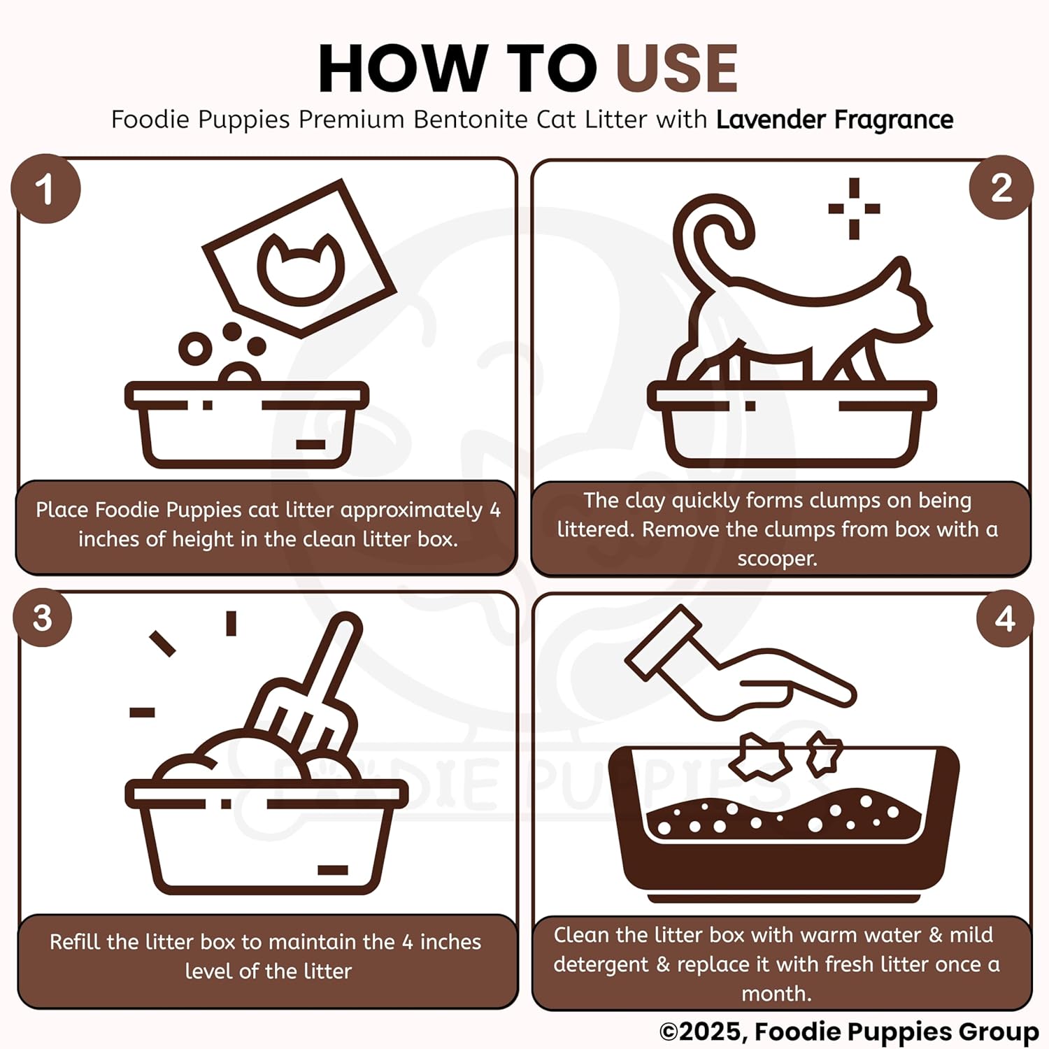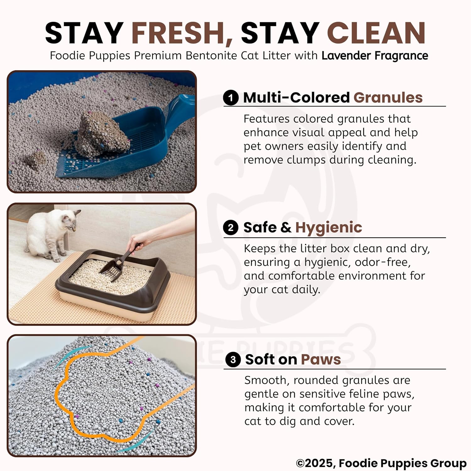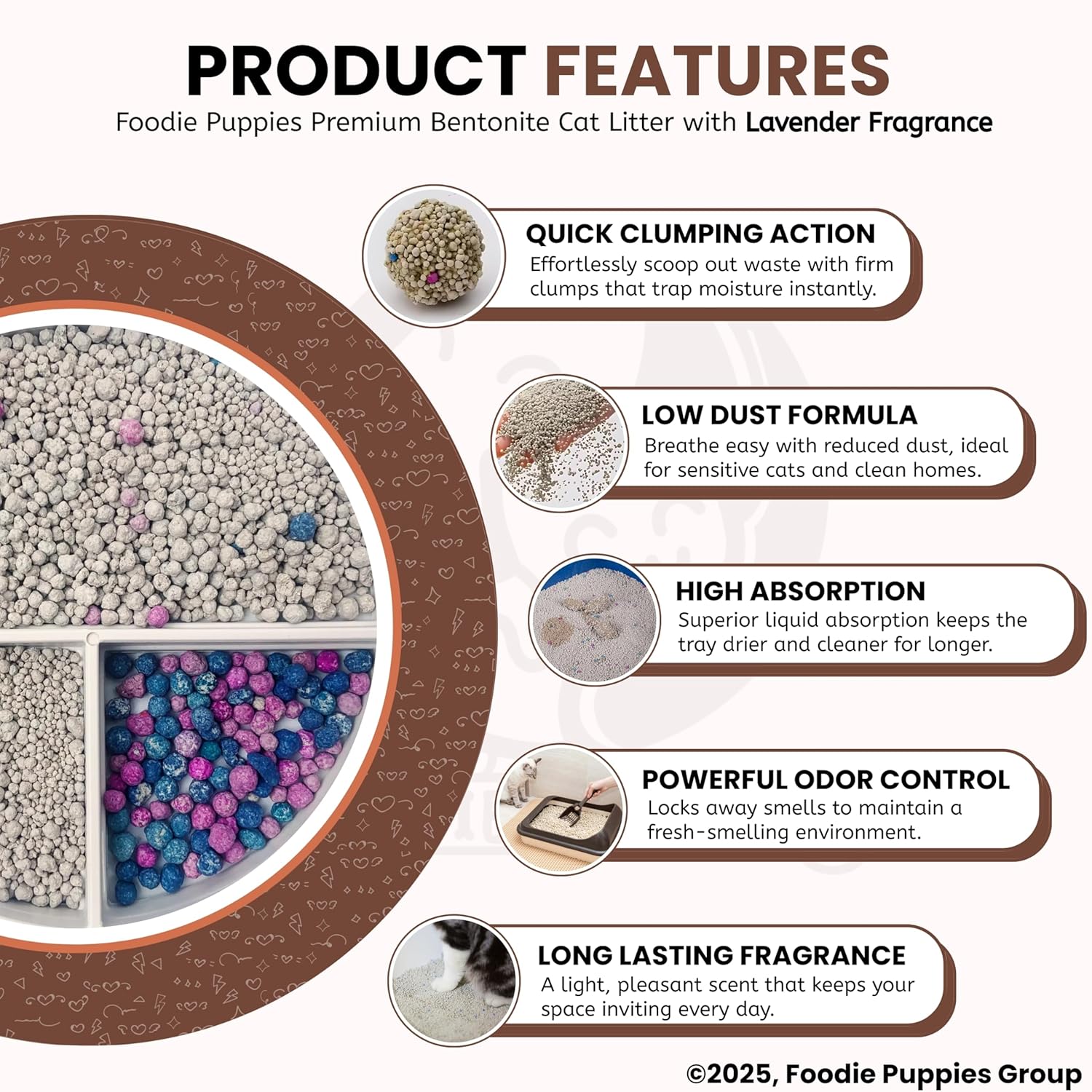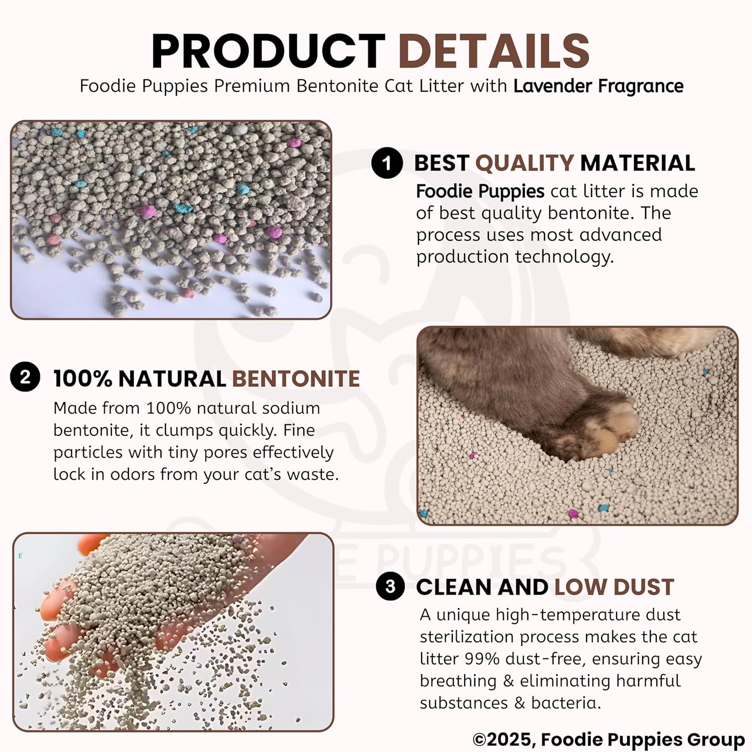 Foodie Puppies Natural Bentonite Cat Litter Sand – 10kg with Lavender Fragrance for Cats and Kittens | Clean Low-dust Strong Deodorant Litter Tray Refill with Odor Controlling and Instant Clumping