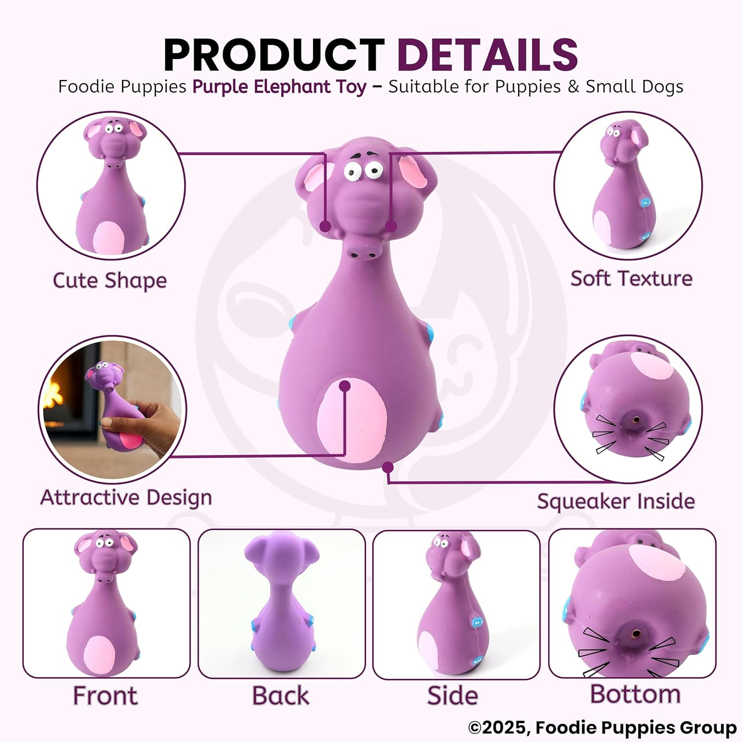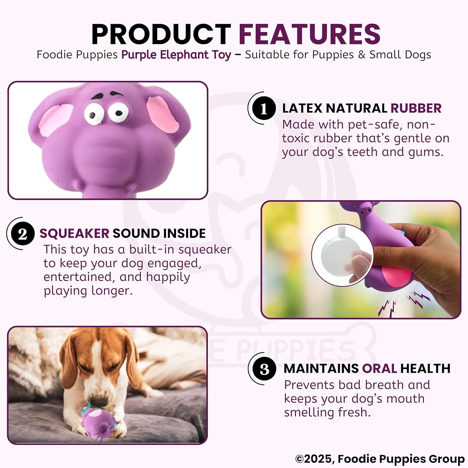 Foodie Puppies Natural Latex Rubber Squeaky Chew Toy – (Purple Elephant, 12cm), Suitable for Puppy, X-Small to Small Dogs | Durable, Animal Design, Fetch & Chew Toy