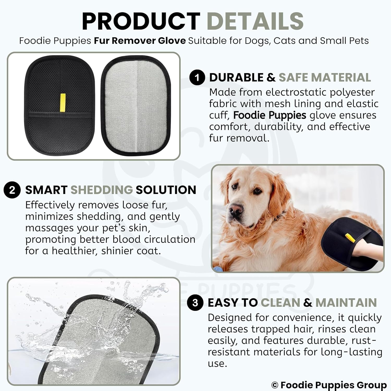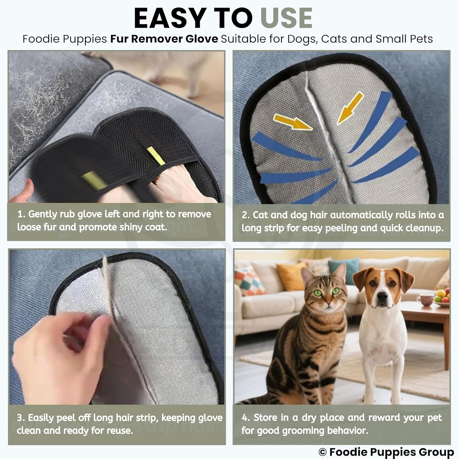Foodie Puppies Pet Hair Removal Glove for Dogs & Cats – (Fur Remover Mitt) | Washable & Reusable Electrostatic Hair Catcher for Couch, Clothes, Car, Carpet, Bed & Furniture | Removes Loose Hair Easily