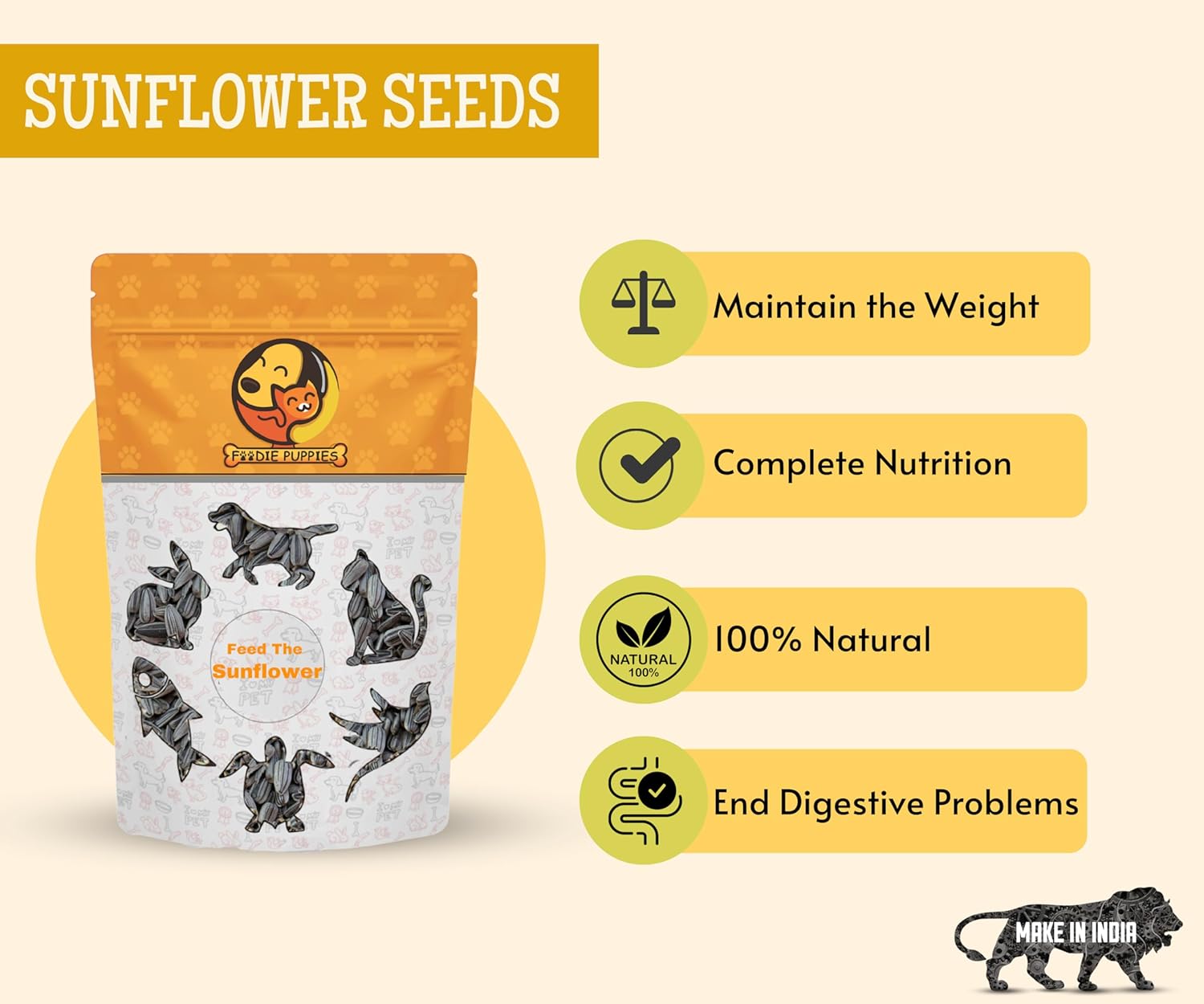 Be the first to review “Foodie Puppies Striped Sunflower Seeds Bird Food – (2kg, Pouch) for Parrots, Parakeets, Lovebird, Cockatiels, Macaws, Conures, Budgies, African Grey, Cockatoo, & Java Birds”