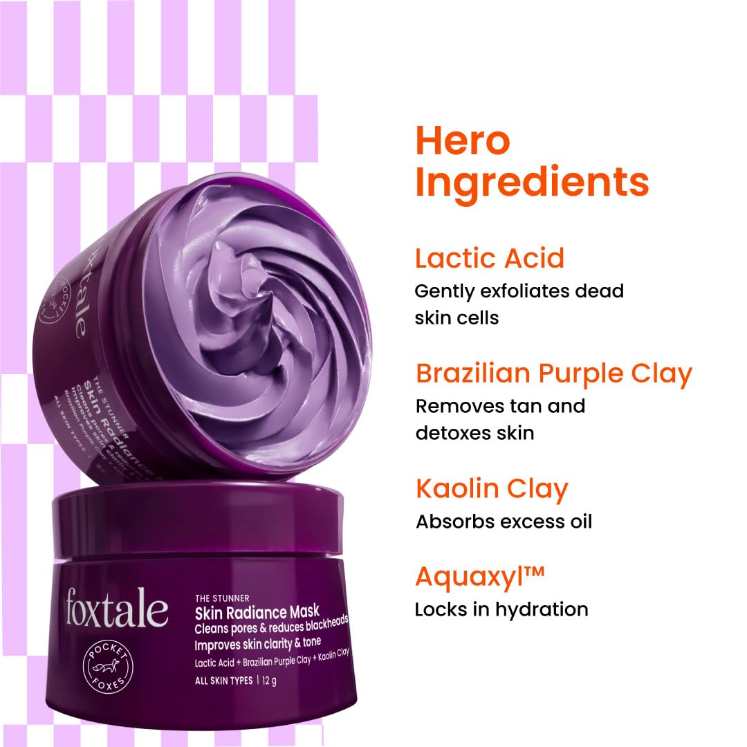 Foxtale De-Tan Face Mask for Glowing Skin | Mini Pack for Travel | Clay Mask with Lactic Acid for Tan Removal, Reduction in Blackheads, Instant Brightening | New-Age Ubtan Face Pack for All Skin Types | Men & Women – 12g