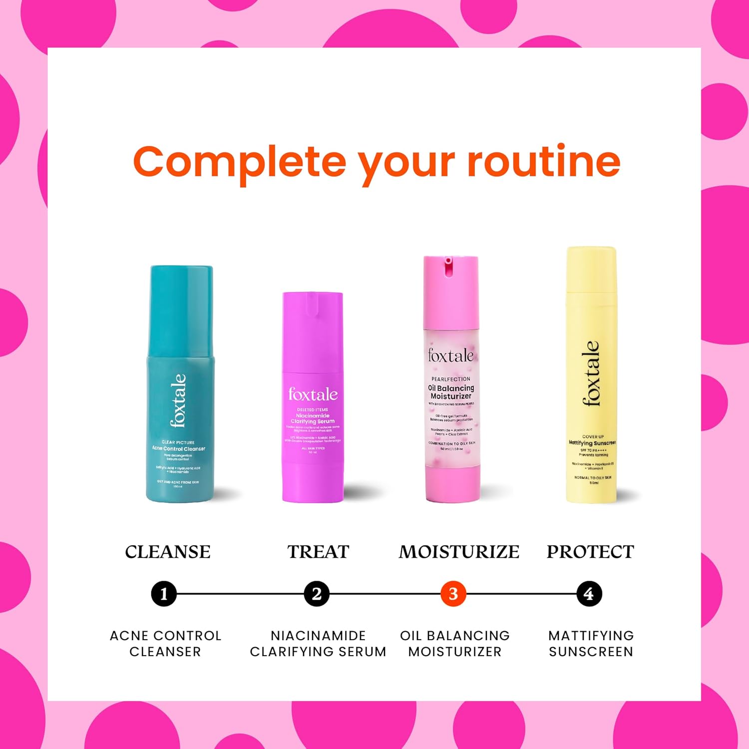 Foxtale Oil-Balancing Gel Moisturizer with Niacinamide, Azelaic Acid Pearls & Cica, 8+ Hours Shine-Free Hydration, Oil-free, Lightweight, Balances Sebum Production, For Oily & Acne-Prone skin, Men & Women, 50 ml