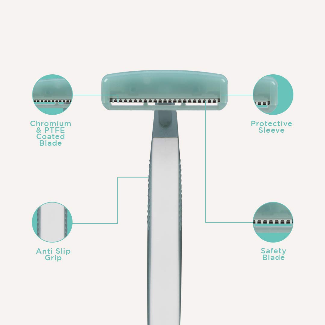 FURR Bikini Line Razor With Chromium and PTFE Coated Reusable Blade | With Protective Sleeve & Anti Slip Grip | Painless Hair Removal | Irritation & Rash Free Shaving | For Women | Pack Of 3