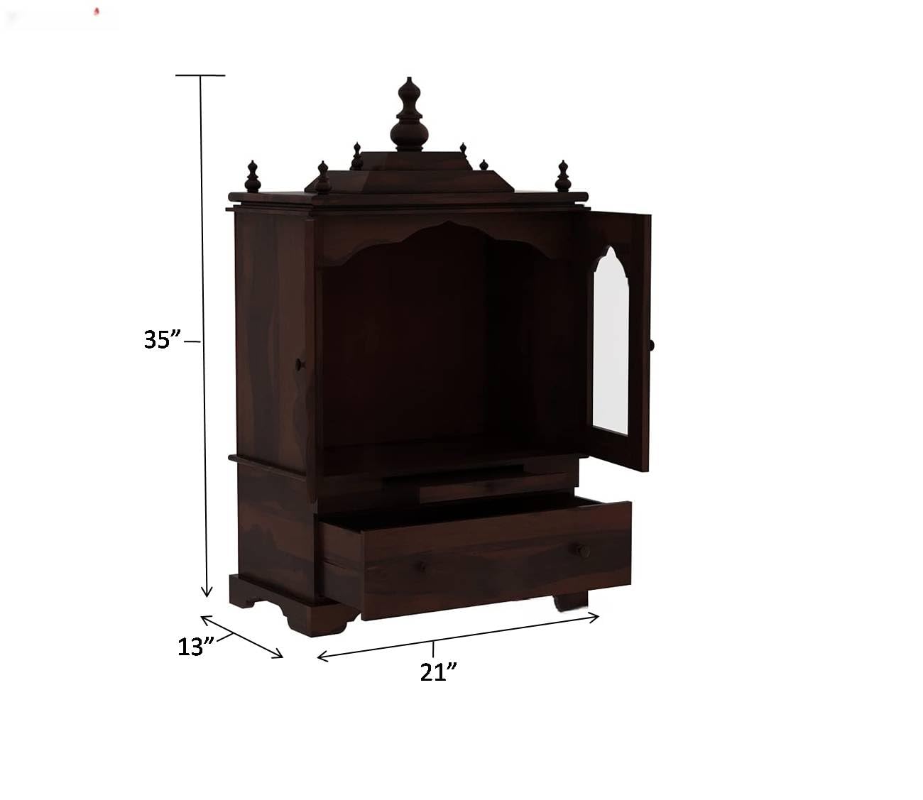 Premium Material: Crafted from quality Sheesham wood, this temple exudes elegance and durability, Traditional Design: The temple features a classic design that adds a touch of tradition to your home decor.