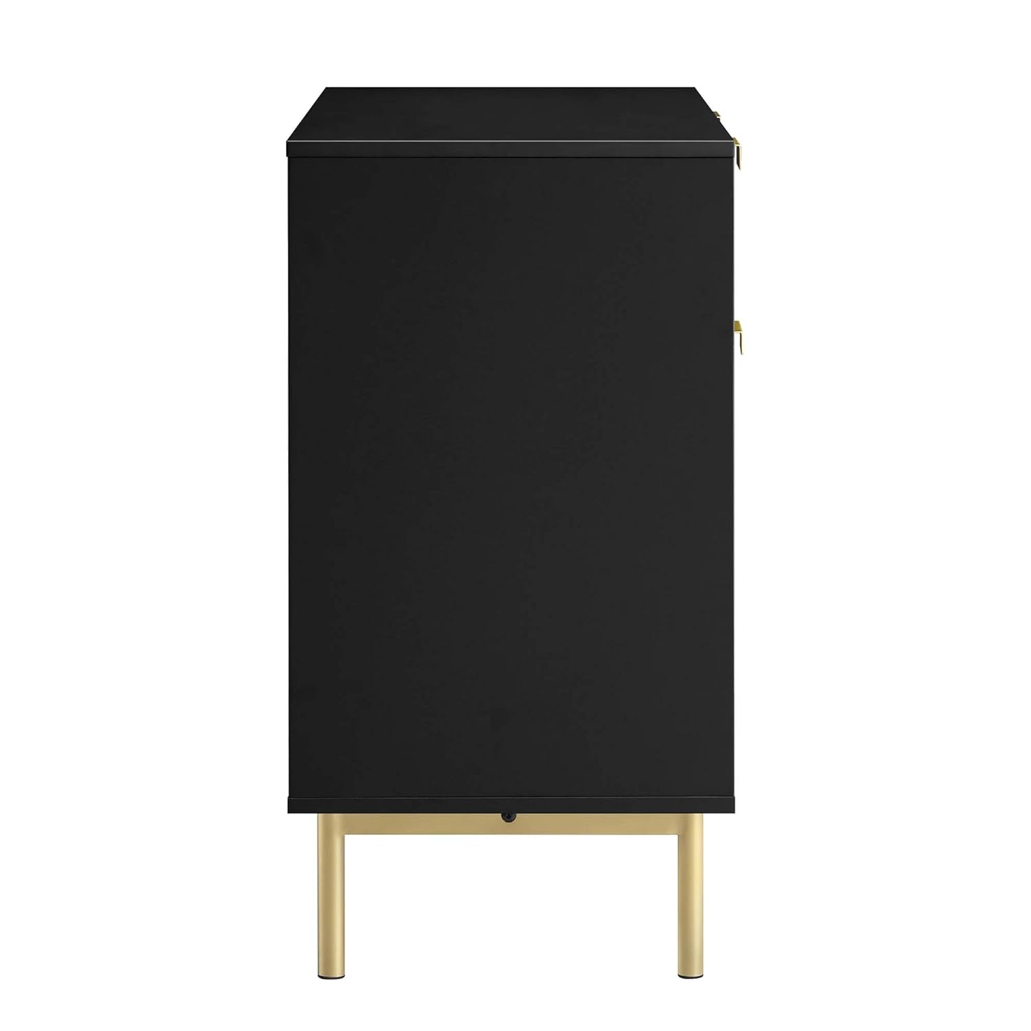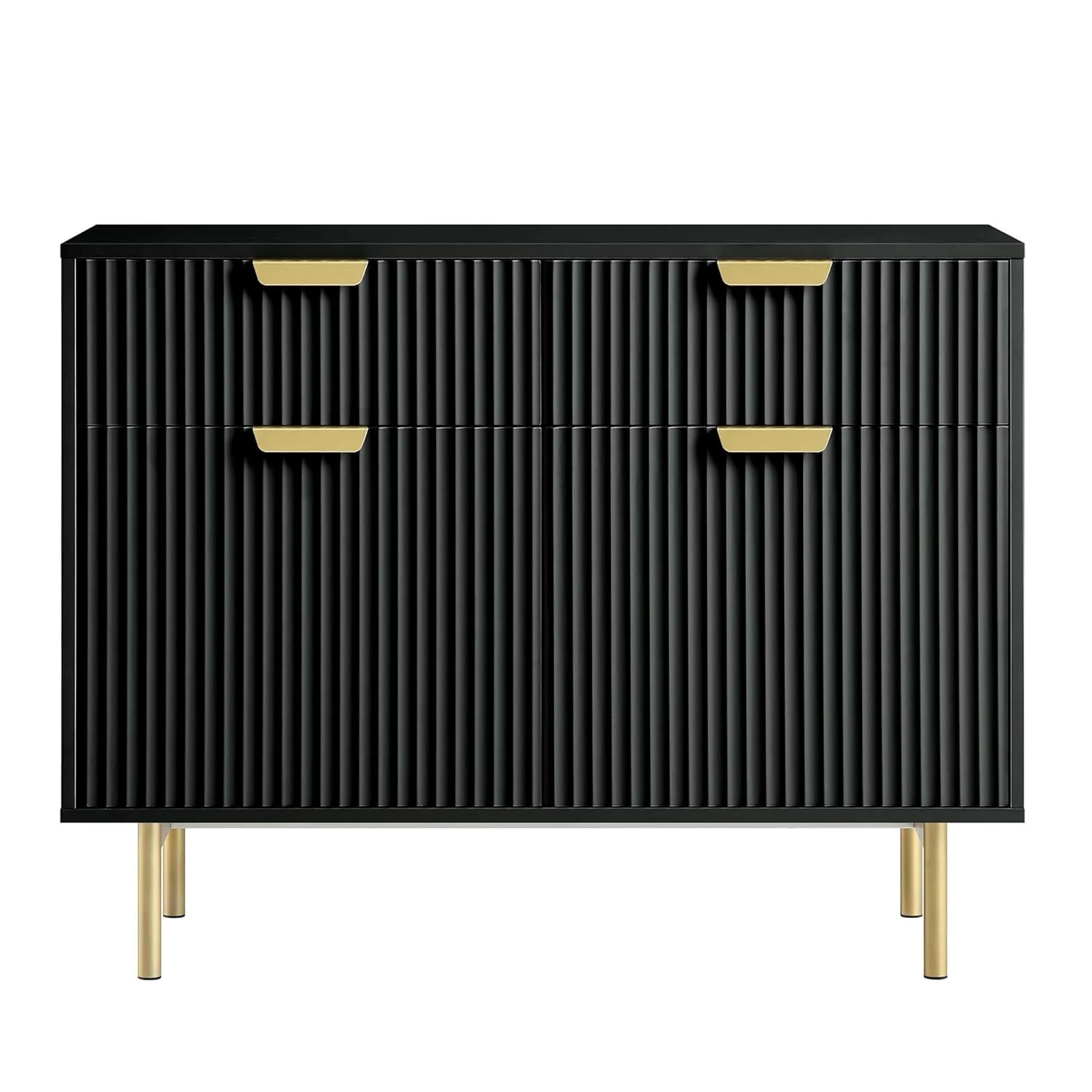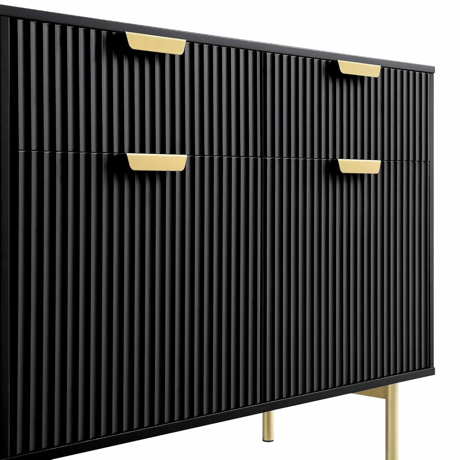 G Fine Furniture Wooden Sideboard Cabinet for Living Room | Kitchen Crockery Cabinets with 2 Drawers & 2 Door | Storage Unit for Bedroom | Engineered Wood & Iron(Black & Golden)