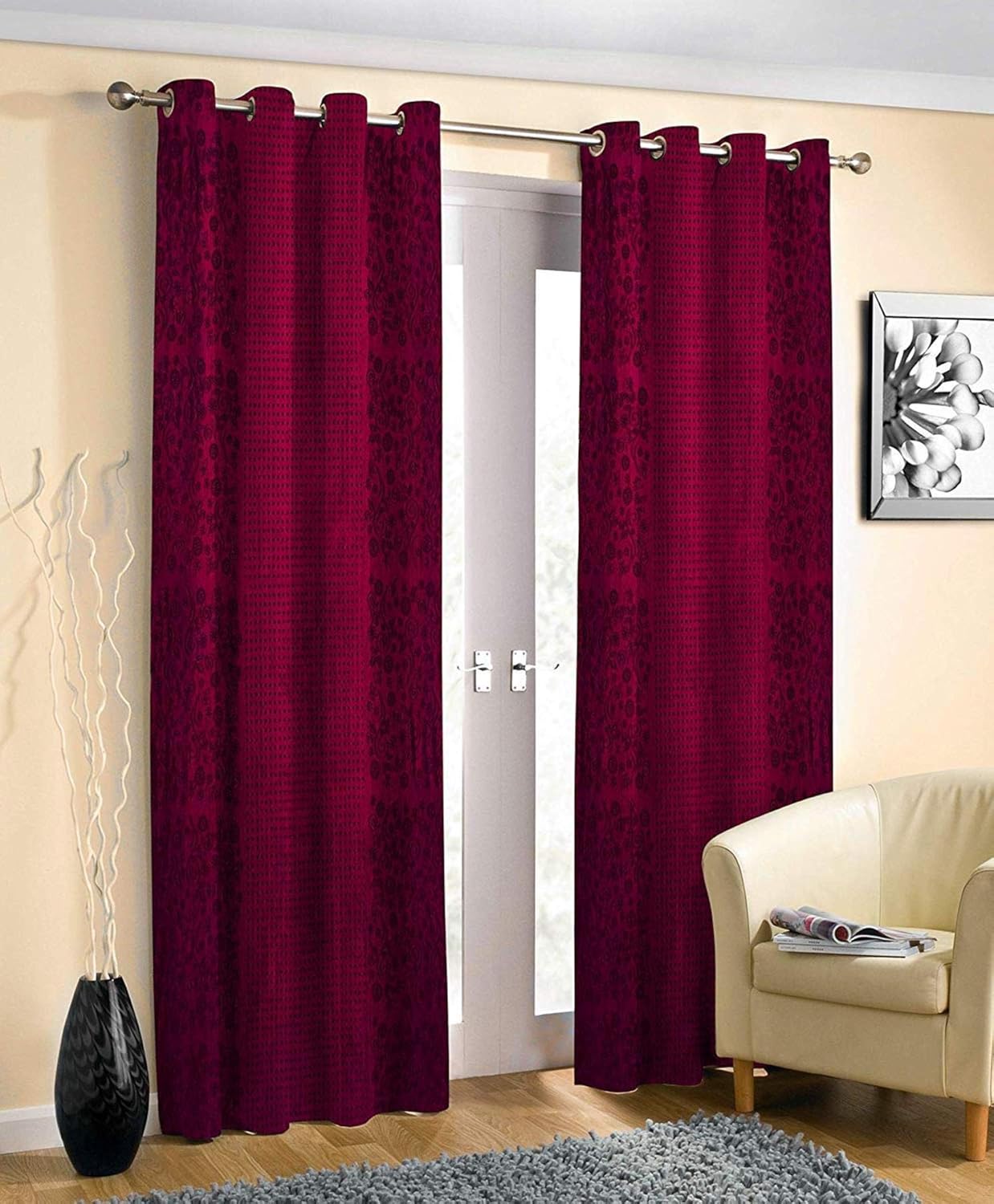 Galaxy Home Decor Pyramid Design Punching Heavy Curtains for Long Door 9 Feet, Pack of 1, Wine