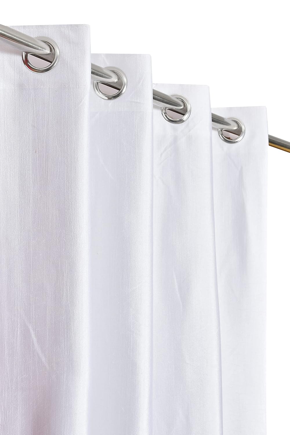 8 stainless steel silver metal grommets on 48 inch wide curtain panel, installed already for hanging up.1.6 inch Inner diameter and 2.4 inch external diameter of each curtain ring, fit for all standard curtain rods.Smoothly sliding.Rust resistant treatment.