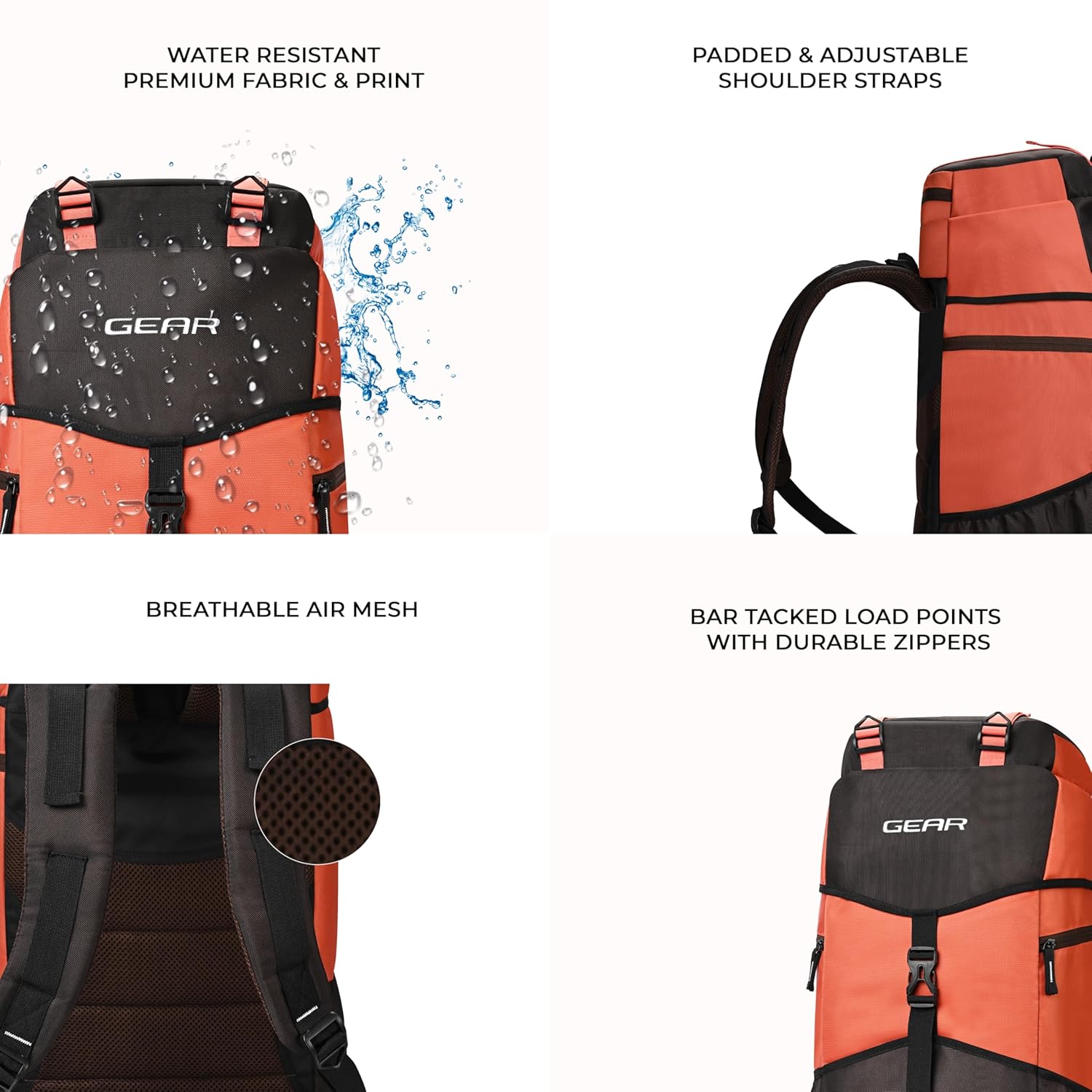 Gear Outdoor 3 25″/45L Extra Large Water Resistant 4 Compartment Rucksack/Travel Bag/For Unisex(Orange-Brown)