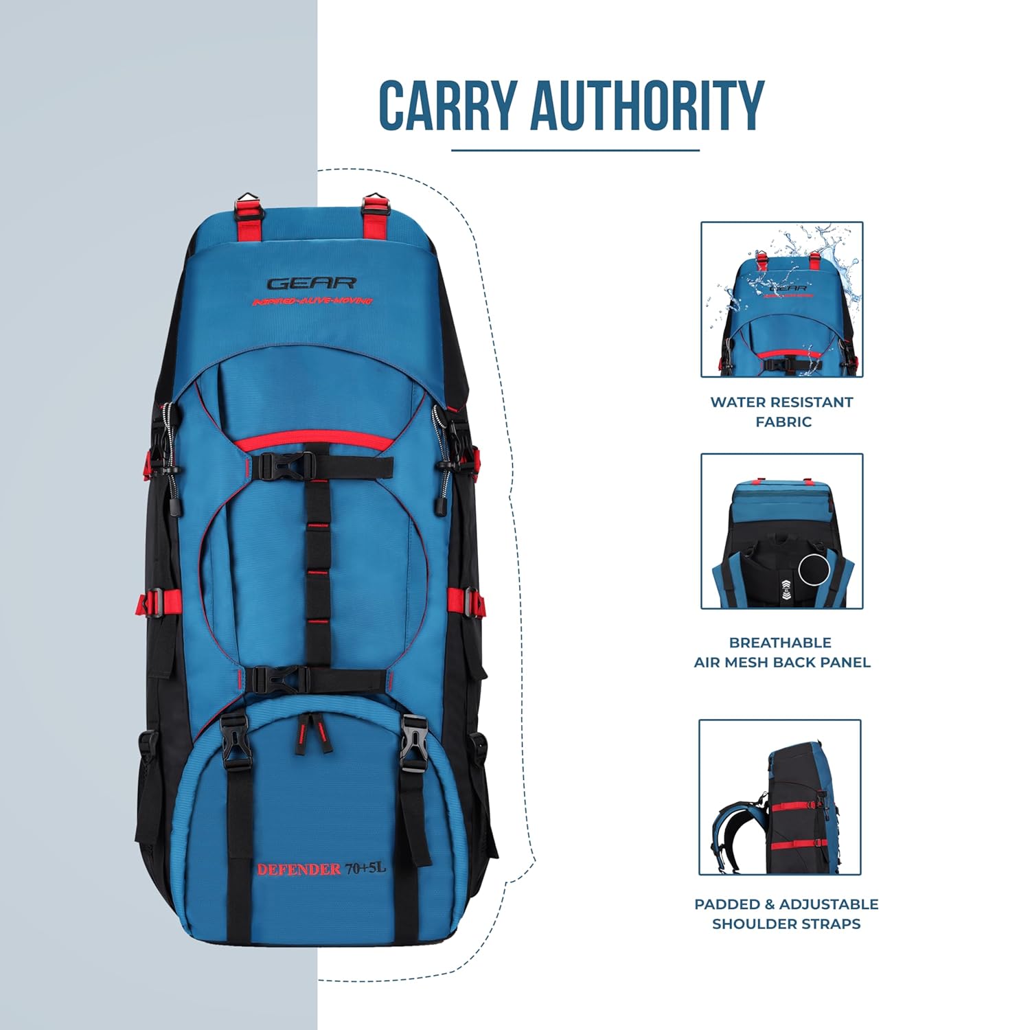 Gear Pioneer Travel 75L Extra Large Water Resistant Rucksack/Travel bag/For Men & Women(Blue – Black)