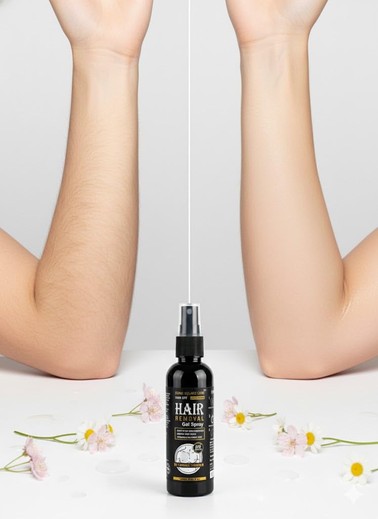 ⭐ Hair Removal Gel Spray – Instant, Painless & Smooth Hair Removal Achieve salon-quality smoothness at home with this advanced Hair Removal Gel Spray, designed for both men and women. Its powerful yet gentle formula works within 6–8 minutes, dissolving unwanted hair from the roots while keeping your skin soft, bright, and irritation-free. 🔥 Key Features Quick Action (6–8 Minutes): Removes hair fast and effectively. Irritation-Free Formula: Gentle on sensitive skin. Smooth Skin Touch: Leaves your skin silky and moisturized. Paraben & Sulphate Free: No harsh chemicals, safe for all skin types. De-Tanning Formula: Helps lighten and brighten the treated area. Easy Spray Application: Ensures even coverage and mess-free use. 🌿 Why This Hair Removal Spray? Unlike shaving, waxing, or harsh creams, this spray offers a painless, convenient, and hygienic way to remove body hair. Perfect for quick grooming before trips, events, or daily use. ✔ Ideal For Use On Arms & Legs Underarms Back & Chest Bikini Line (with caution) Suitable for both Men & Women ⭐ Benefits You Will Love No cuts or razor burn No sticky residue No burning or redness Gives a clean, smooth finish Brightens skin with every use 📦 Net Content: 100 ml (3.35 fl oz)