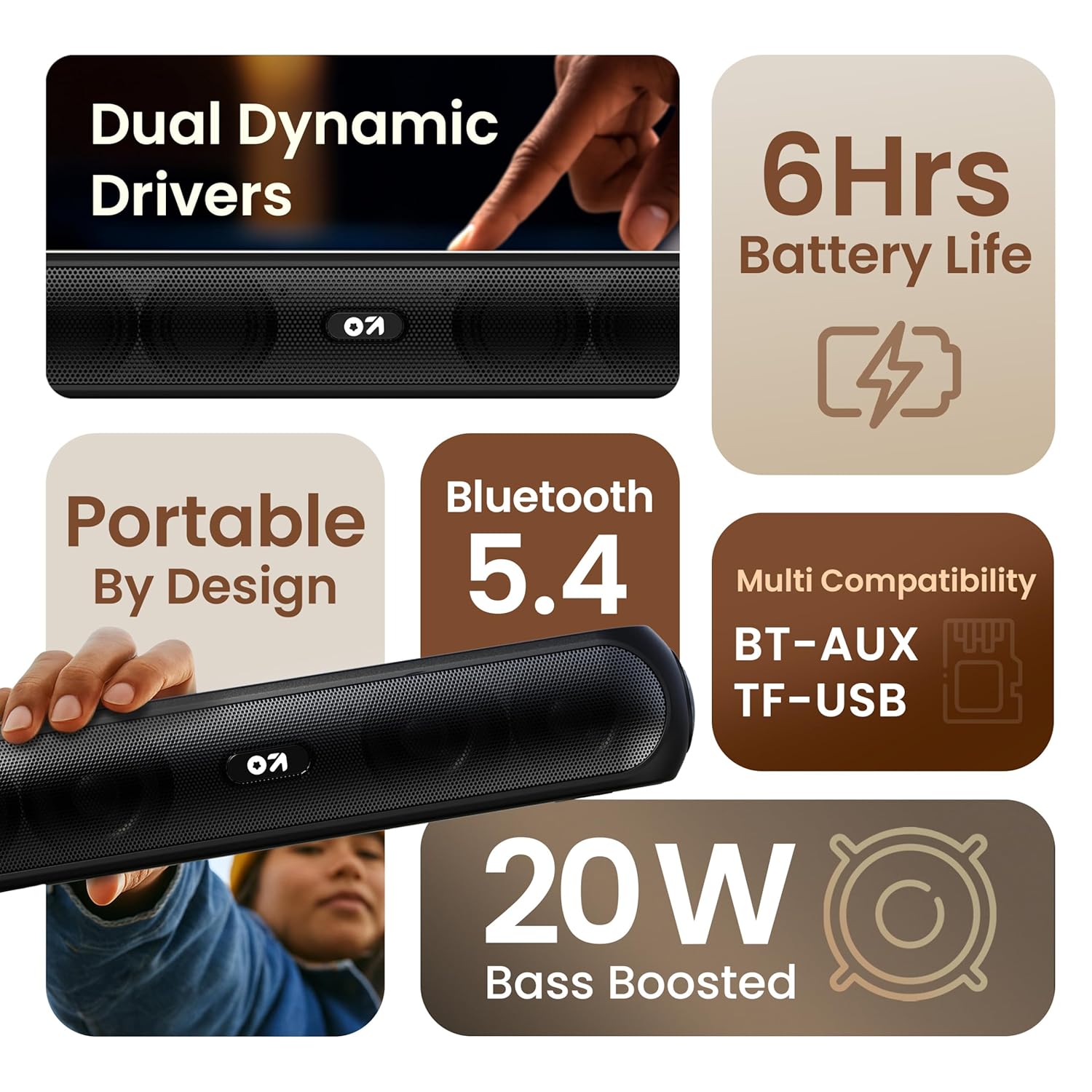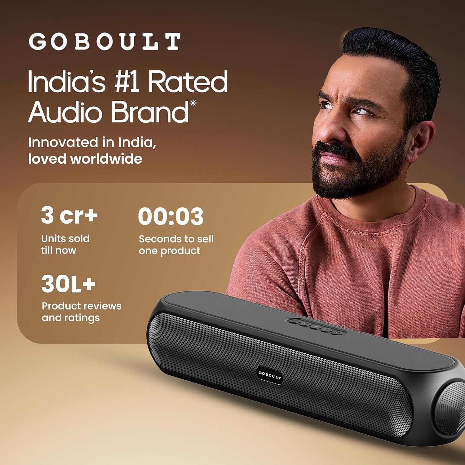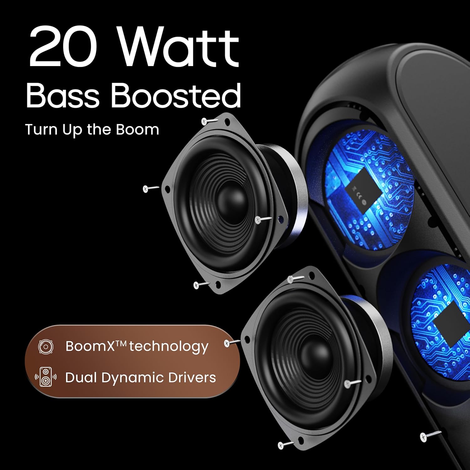GOBOULT (Formerly Boult Newly Launched Bassbox X20 Bluetooth Speaker 20 Watt BoomX Audio, Up to 6 Hrs Playtime, Type-C Charging, AUX/TF Card/USB & Bluetooth 5.4, Dual Radiator, Portable (Pure Black)