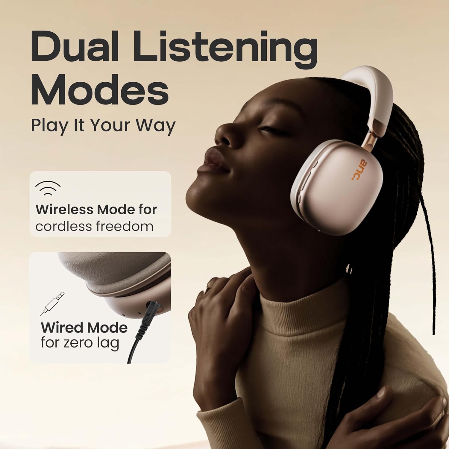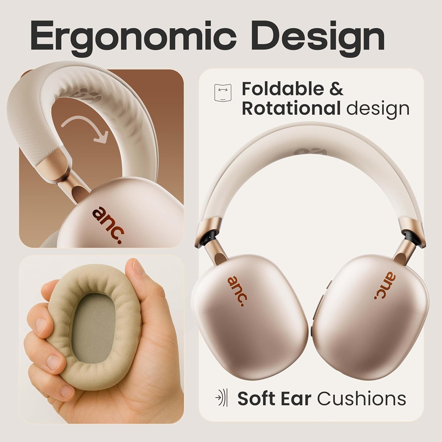 ✅ Active Noise Cancellation (ANC): Block out external noise and distractions with advanced ANC technology—perfect for immersive music, gaming, and calls. Ideal for over ear headphones wireless users.