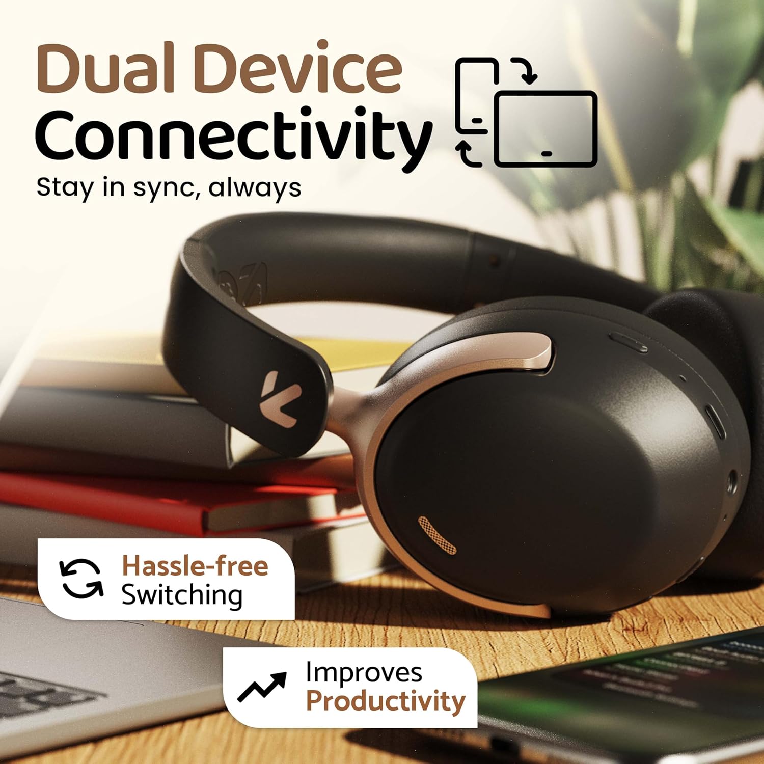 ✅ Dual Device Pairing – Connect and switch seamlessly between two devices. Stay productive with Soniq over-ear headphones while multitasking.