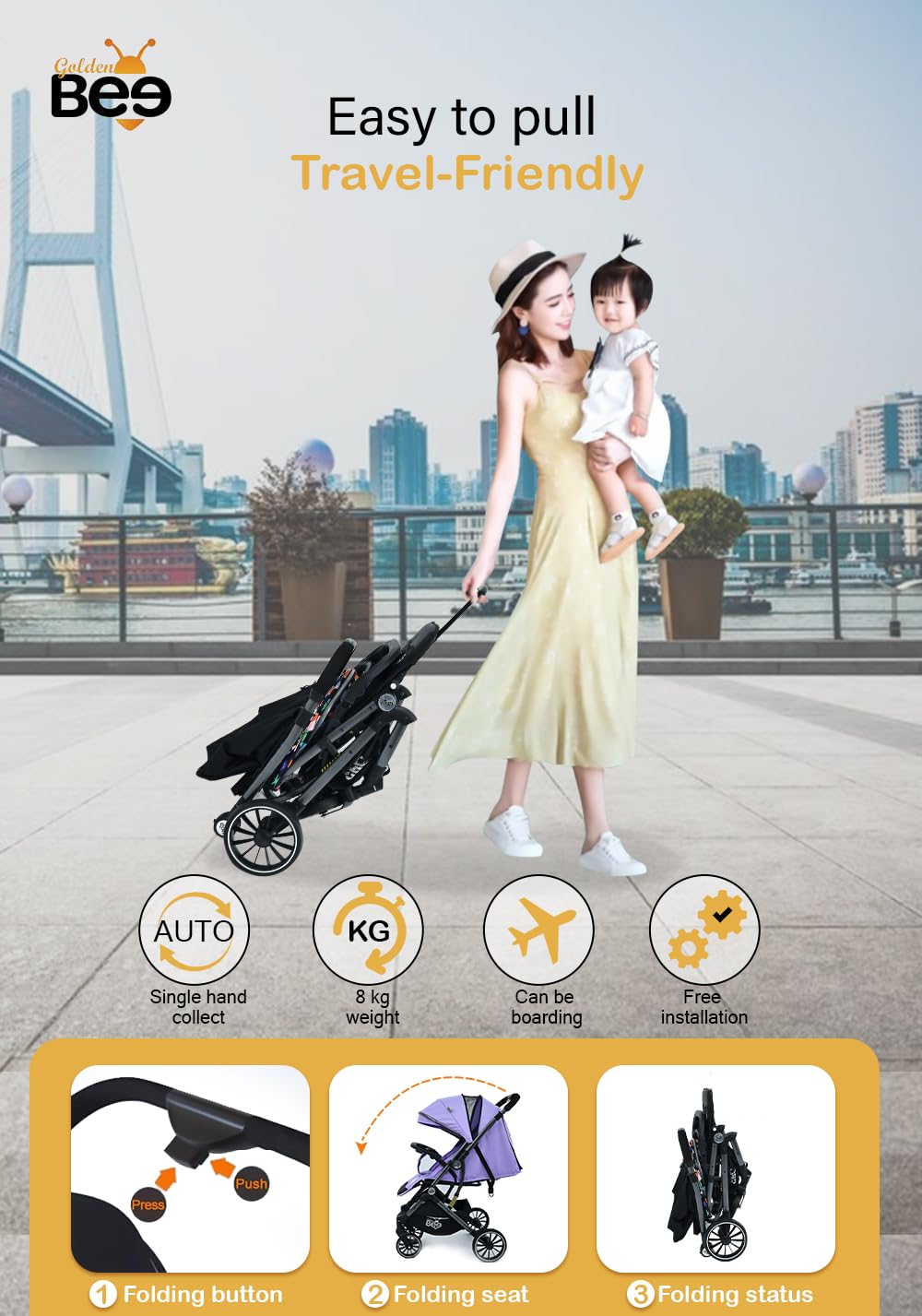 DURABLE & STYLISH DESIGN: Crafted with high-quality materials and a sleek golden black finish, this stroller not only performs well but looks premium. Its sturdy yet lightweight frame supports everyday use while the modern aesthetic turns heads wherever you go.