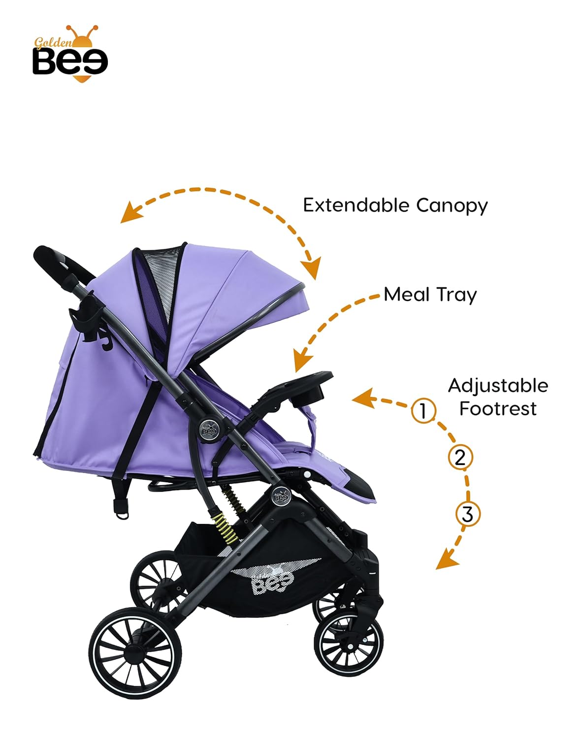 Golden Bee Choco Joy Baby Stroller – Baby Stroller for 0-5 Years Boys & Girls, Foldable Lightweight Ride with Detachable Tray Compact Design for Airplane Travel, Purple Travel Trolley