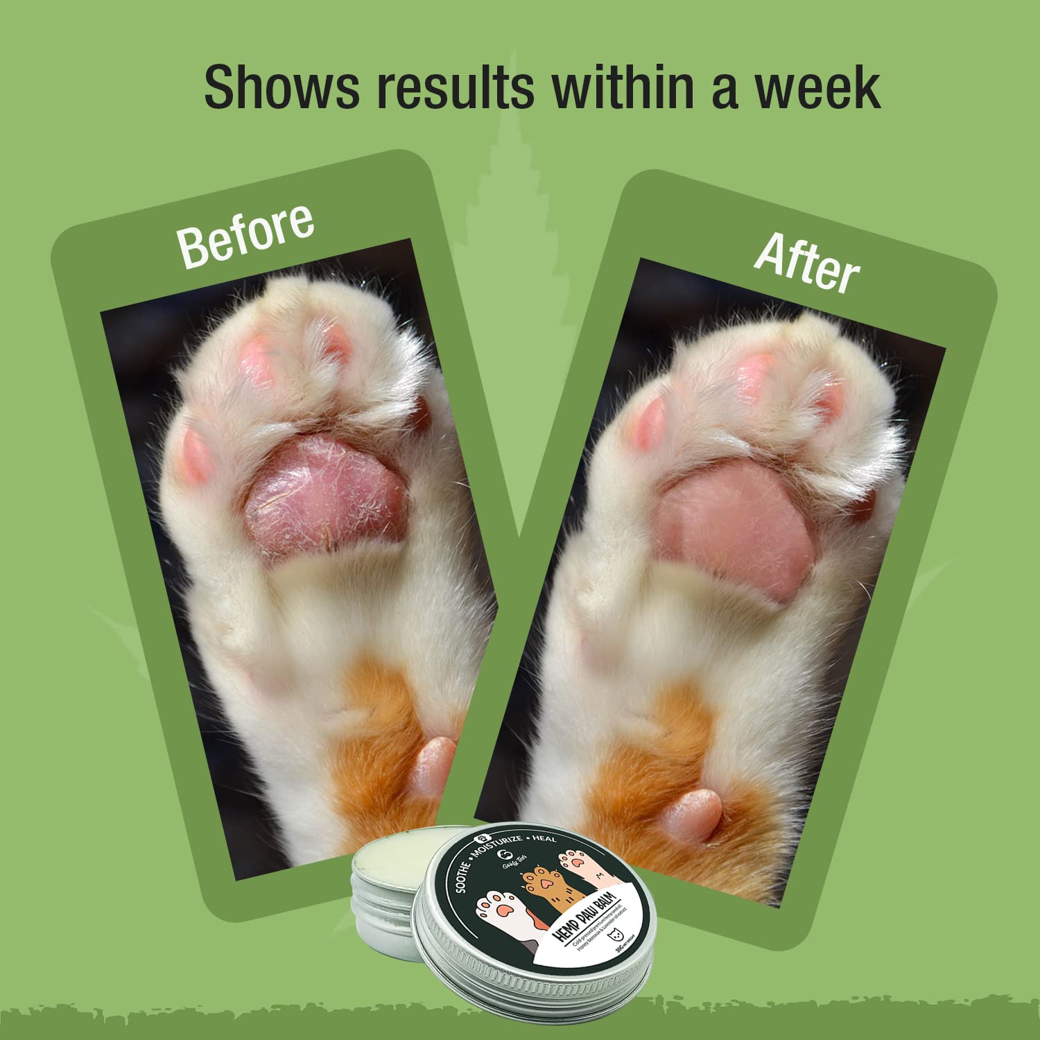 All Season Protection: Goofy Tails paw balm protects, soothes and moisturizes your pet’s paws,nose and elbows. This paw wax for cats works as a protective shield on snow and ice to prevent slipping in winter, and works well to protect the skin on pet feet from hot asphalt and pavement.