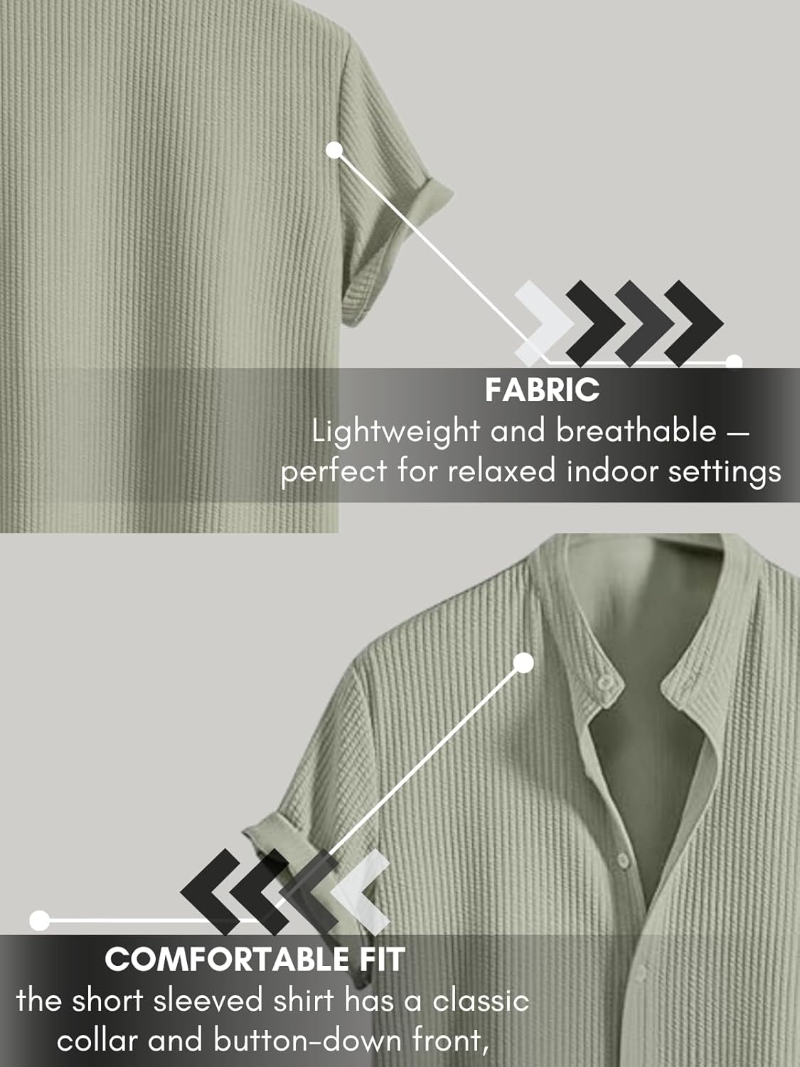 Elevate your casual style with this olive green men’s co‑ord set. Featuring a breathable short‑sleeve button‑down shirt and elastic waist trousers, it’s lightweight, stylish, and perfect for summer. Ideal for relaxed outings, this matching set offers comfort, versatility, and easy care.
