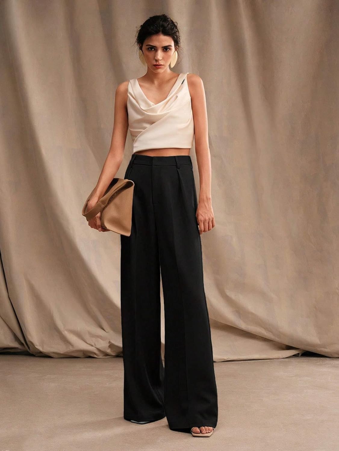 These high-waisted trousers offer a sophisticated look, perfect for both office and casual wear.
