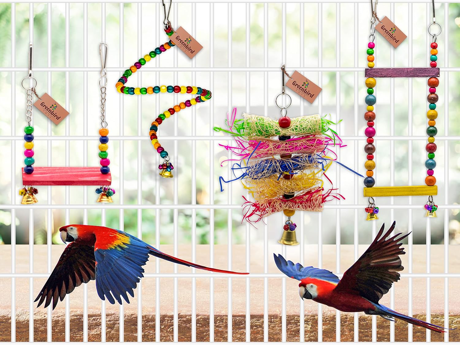 GREENBIRDS Toys Combo Pack of 8 Bird Toys Swing Ladder Perches Playful & Interactive Chewable Cage Toy Hanging Training Aid for Love Birds, Budgies Small & Medium Bird & Parrots