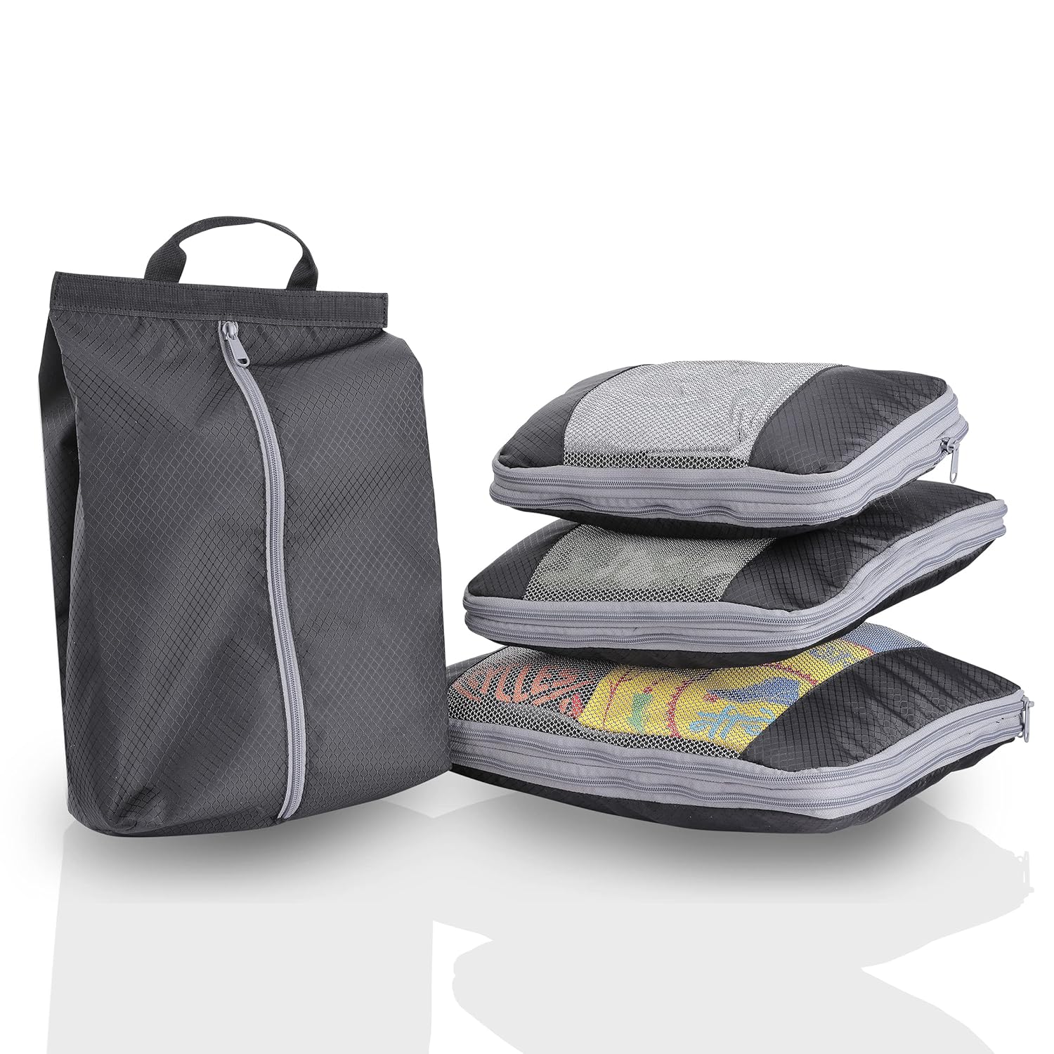 Guardian Gears packing cubes comes in a set of 4. 1 Large Bag, 1 Medium Bag, 1 Small Bag and 1 Laundry/Shoe Bag. They help you stay organized on your travels. One set of these packing cubes and you are sorted for at least a weeks travel plans.