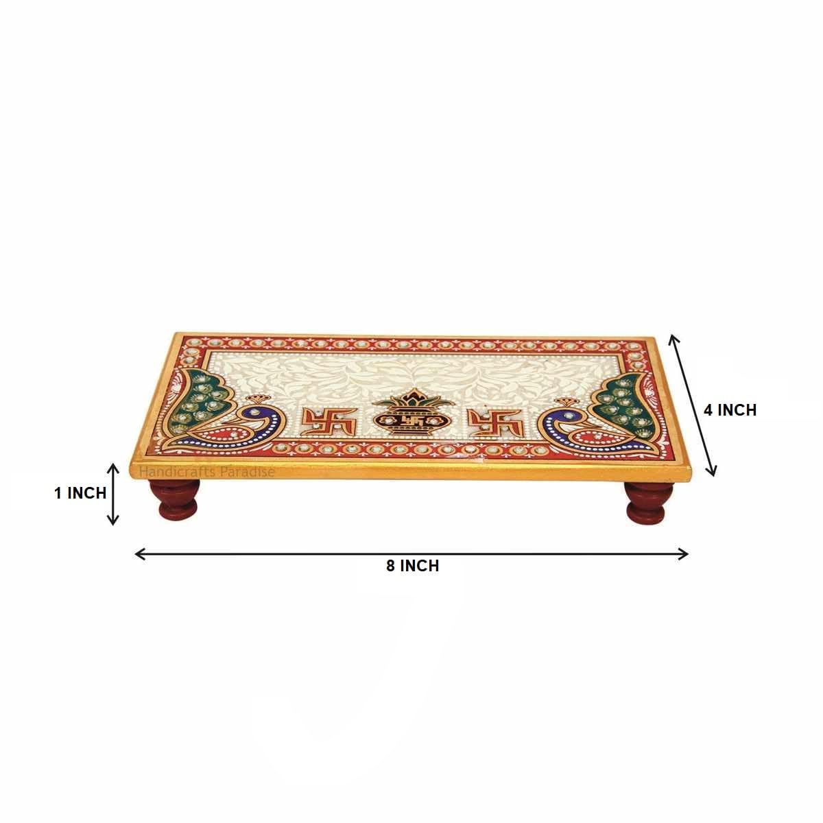 Handicrafts Paradise (8 x 4 inch) Marble Pooja Chowki Peacock Motif for Mandir Bajot for God, Home Mandir, Idols Statues Pratima, Home Décor Showpiece