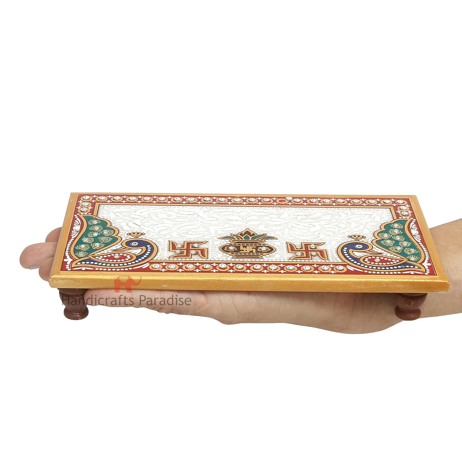 Be the first to review “Handicrafts Paradise (8 x 4 inch) Marble Pooja Chowki Peacock Motif for Mandir Bajot for God, Home Mandir, Idols Statues Pratima, Home Décor Showpiece”