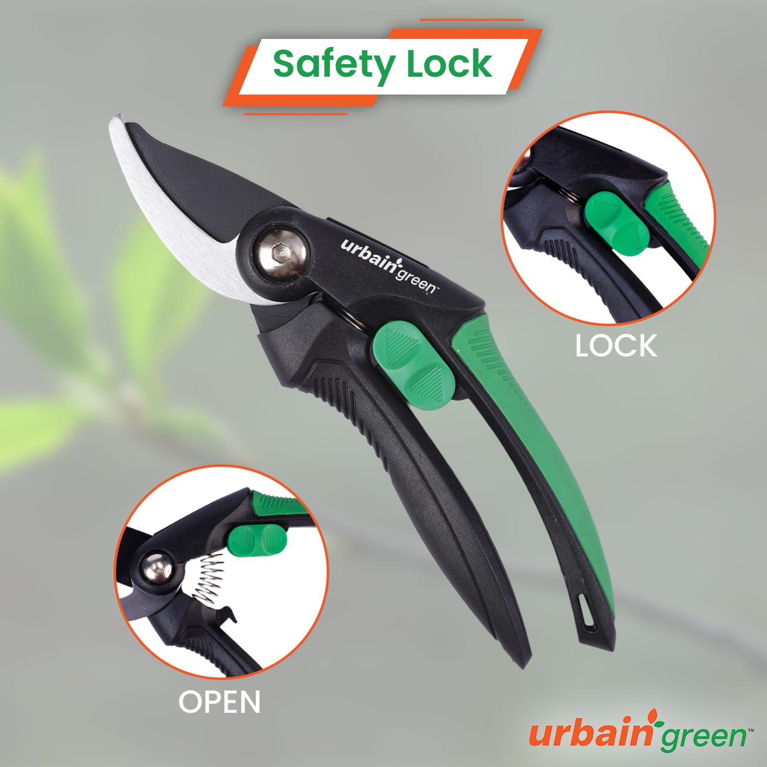 Heavy-Duty Bypass Pruning Shears for Home Gardening by Sharpex High Carbon Steel Blade with Teflon Coating Secateurs with Smart Abs Lock for Safety (Black)