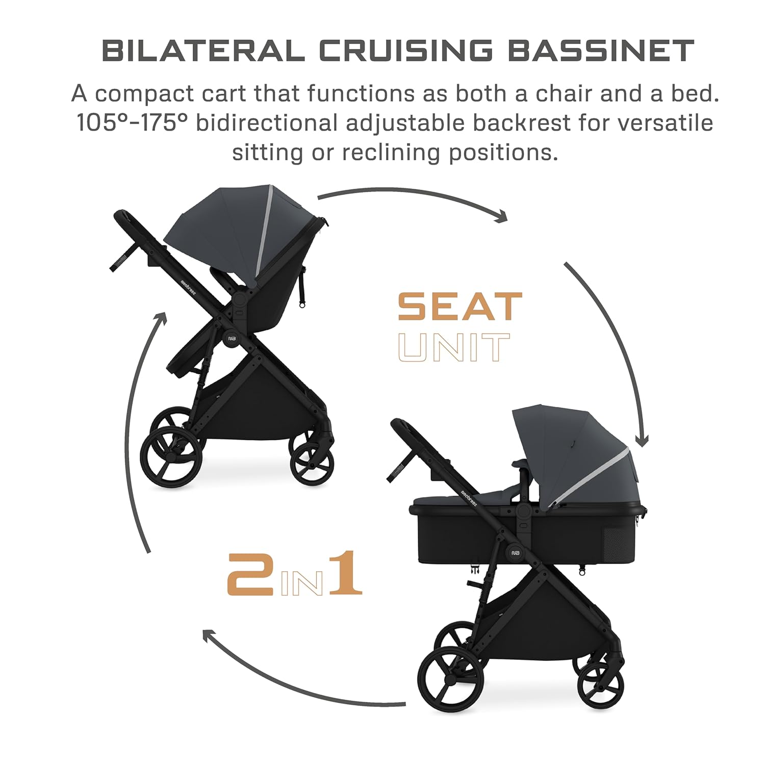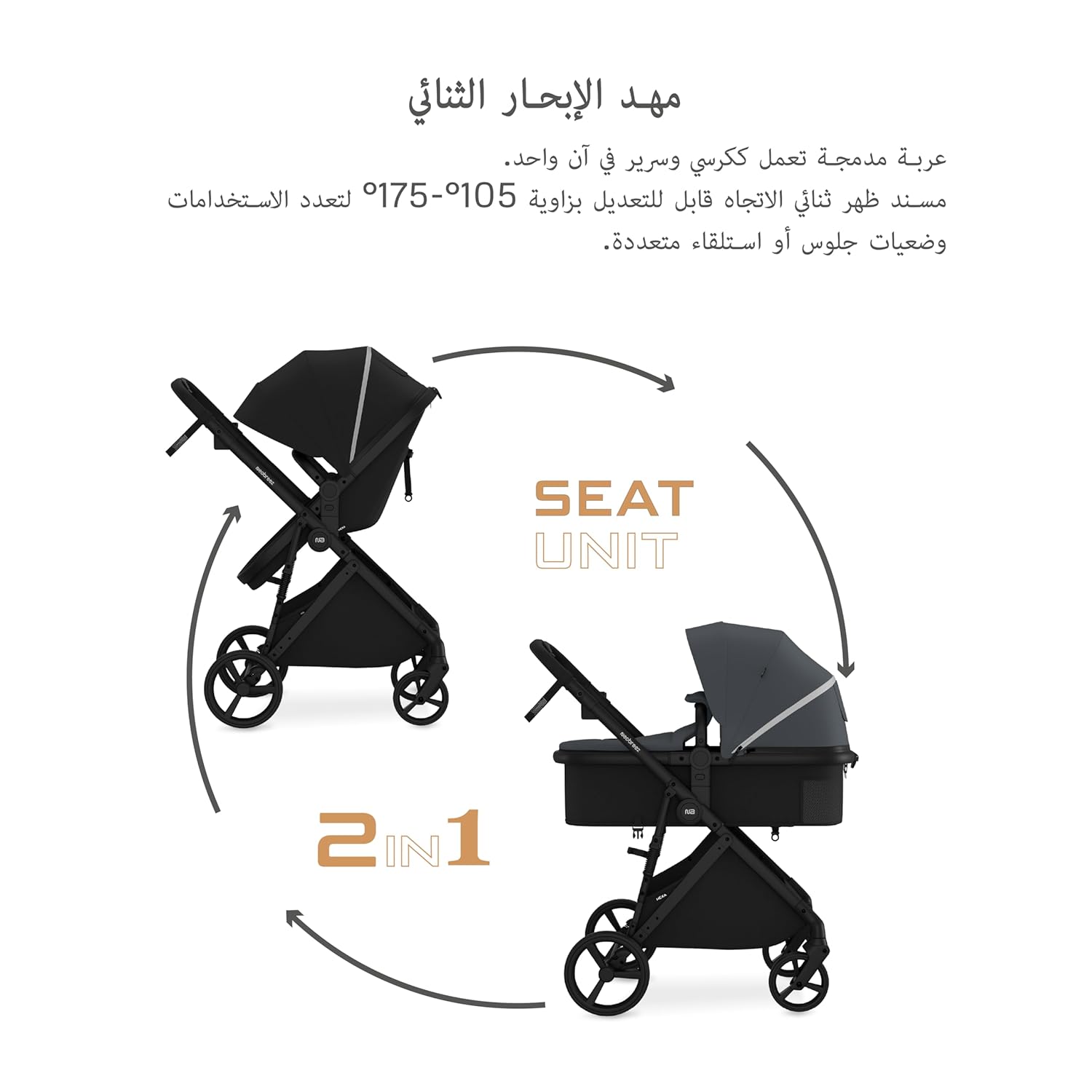 2-in-1 Versatile Design: The HEXA 2-in-1 baby stroller offers bassinet mode, a reversible parent- or forward-facing seat, and adjustable backrest (105°-175°) for sitting, feeding, or napping. Easily switch between landscape for great views, a cozy bassinet for naps, and a reversible seat as your child grows. Includes a handy 2-in-1 cup holder that securely holds your drink and phone, making every outing convenient and comfortable.