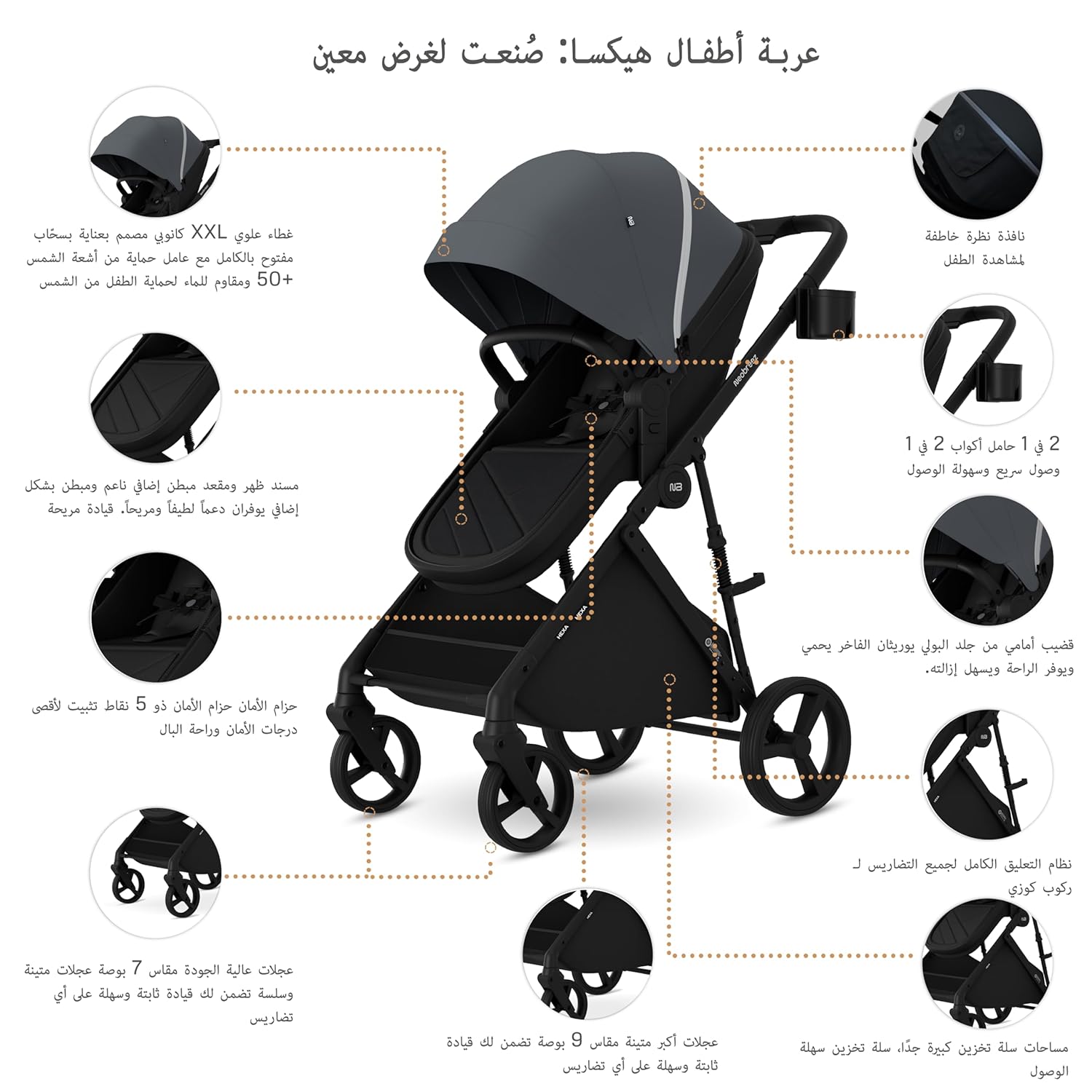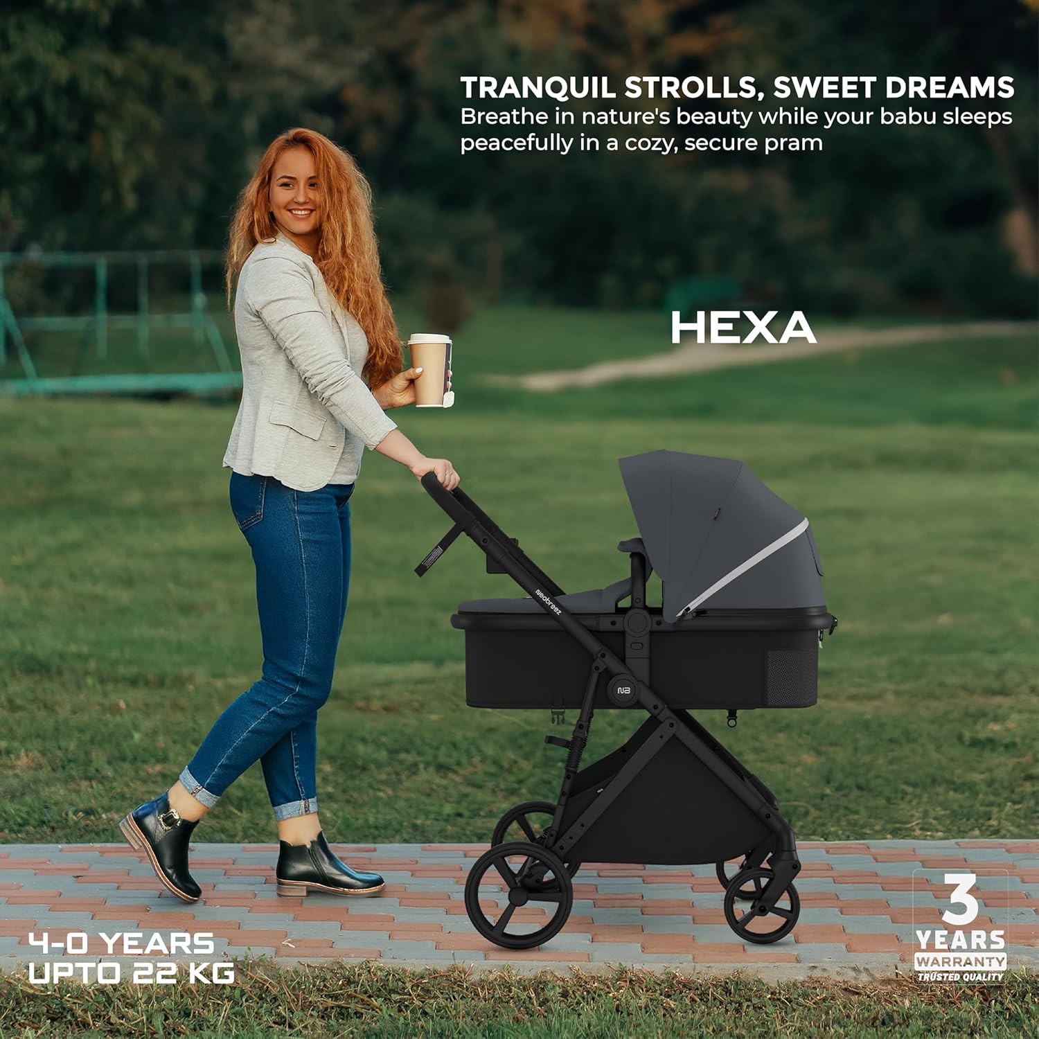 Hexa 2-in-1 Convertible Baby Toddler Stroller,Carry Cot,Bassinet Pram,XL Basket,UV&Waterproof Canopy,Pushchair,Gift Bag,Phone Holder&Toy Strap,2 in 1 Cup Holder,0-4yrs(22kg),3yrs Warranty