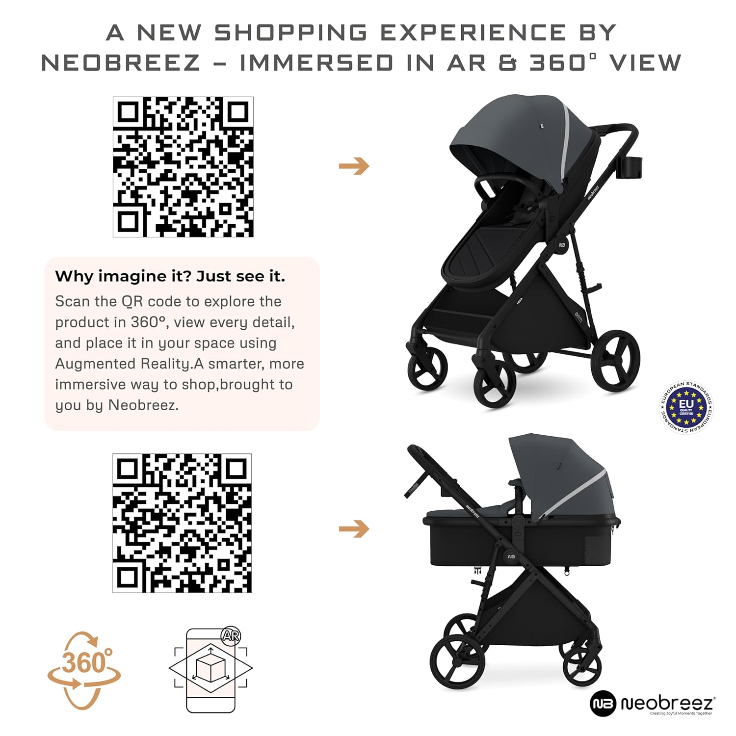 Step out with confidence and ease using the Neobreez HEXA 2-in-1 Baby Stroller, designed for parents who value style, comfort, and practicality. Seamlessly switch between a cozy bassinet for your newborn and a reversible stroller seat that lets your toddler face you or the world ahead. Its lightweight steel frame and easy-fold system make storage and travel effortless, while plush, breathable polyester fabric keeps your little one comfortable.This stroller comes with 3-year warranty. Safety is paramount, featuring a quick-release 5-point adjustable harness, reflective canopy accents for low-light visibility, and a wrist strap to prevent slips—meeting EN 1888-1/2:2018 and ASTM F833 safety standards. Ready for any terrain, the HEXA’s advanced suspension and durable wheels provide a smooth ride, complemented by a premium leatherette handle for easy control. Compact when folded yet spacious in use, this versatile stroller includes a 2-in-1 cup holder and a stylish bag, making every outing seamless and enjoyable. Box Includes: 1 xUser manual, 1 xgift bagincludes(1 xphone holder, 1 xtoy strap, 10 reflective stickers, 1 x recycled cotton pouch) and 2-in-1 cup holder.