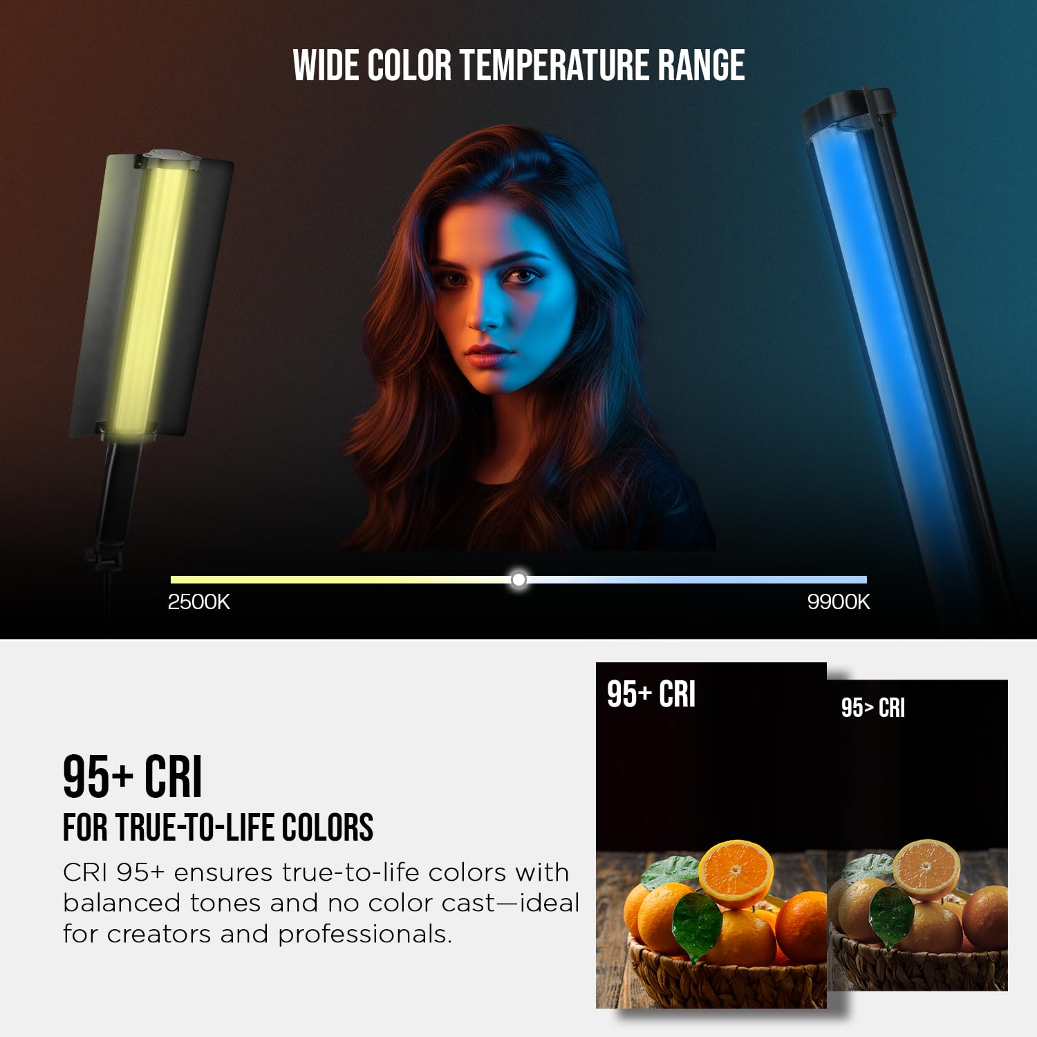 Adjustable RGB & CCT Mode: Explore unlimited creativity with RGB, CCT, and HSI modes offering an adjustable 2500K-9900K color temperature, perfect for creating stunning lighting effects for photography and videography.