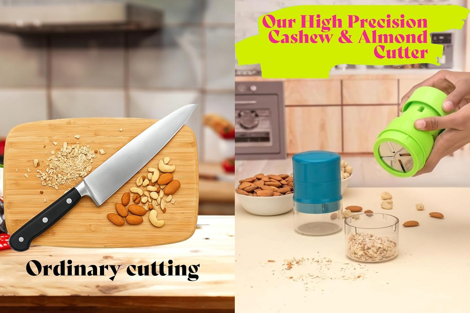 High Precision Cashew & Almond Cutter Slicer, Matte Finish, Stainless Steel Blades with Built-in Storage Cup Durable, Effortless Slicing of Dry Fruits Almonds, Cashews, Pistachios & More (Multicolor)