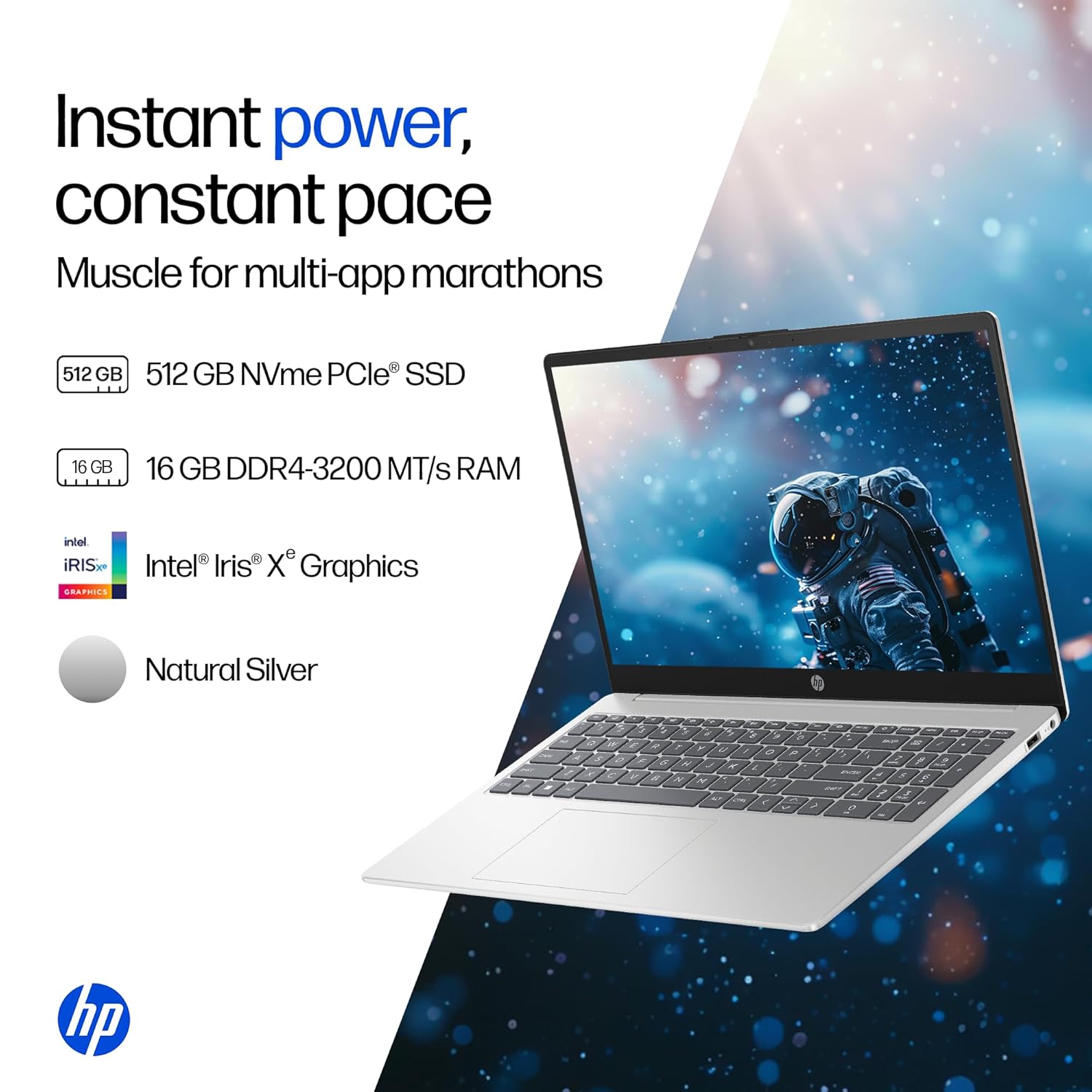 HP 15, 13th Gen Intel Core i7-1355U (16GB DDR4, 512GB SSD) FHD, Anti-Glare, 15.6’’/39.6cm, Win11, M365(1yr)* Office 24, Silver, 1.59kg, Iris Xe, FHD Camera w/Shutter, Backlit Laptop fd0468tu/fd0515tu