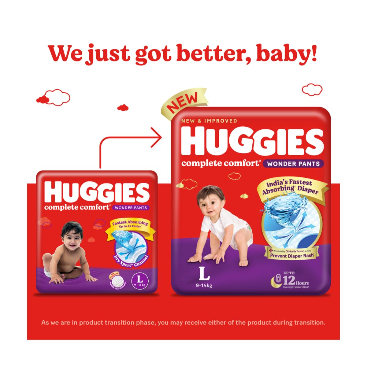 New & Improved Huggies Complete Comfort Wonder Pants – India’s Fastest Absorbing diaper, Clinically Proven to Prevent Diaper Rash; Large size baby diaper pants