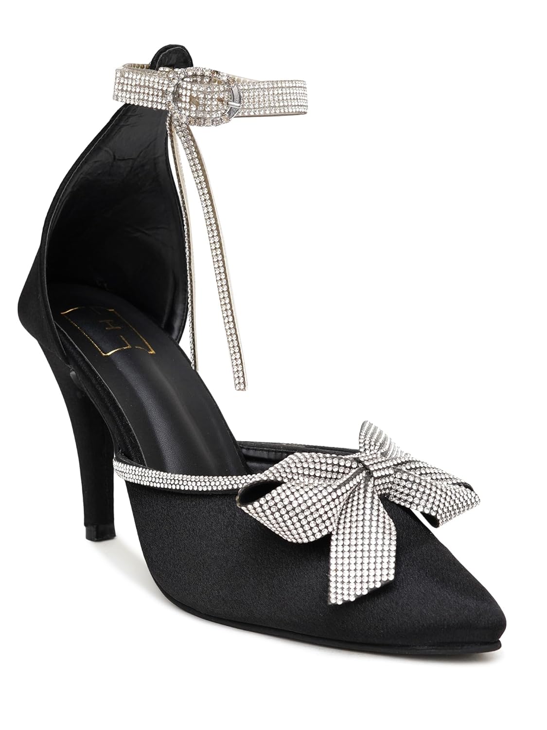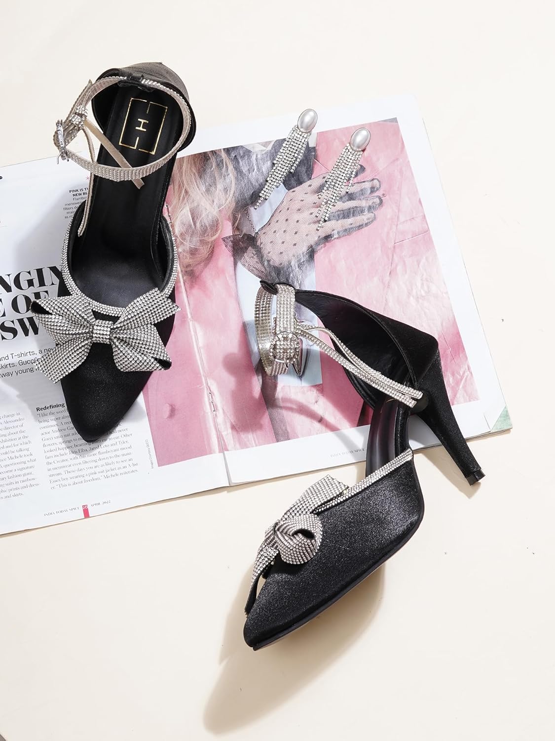 HVNLY Luxury Black Rhinestone Heels for Women | Classic Pumps | Elegant Bridal, Wedding & Party Footwear