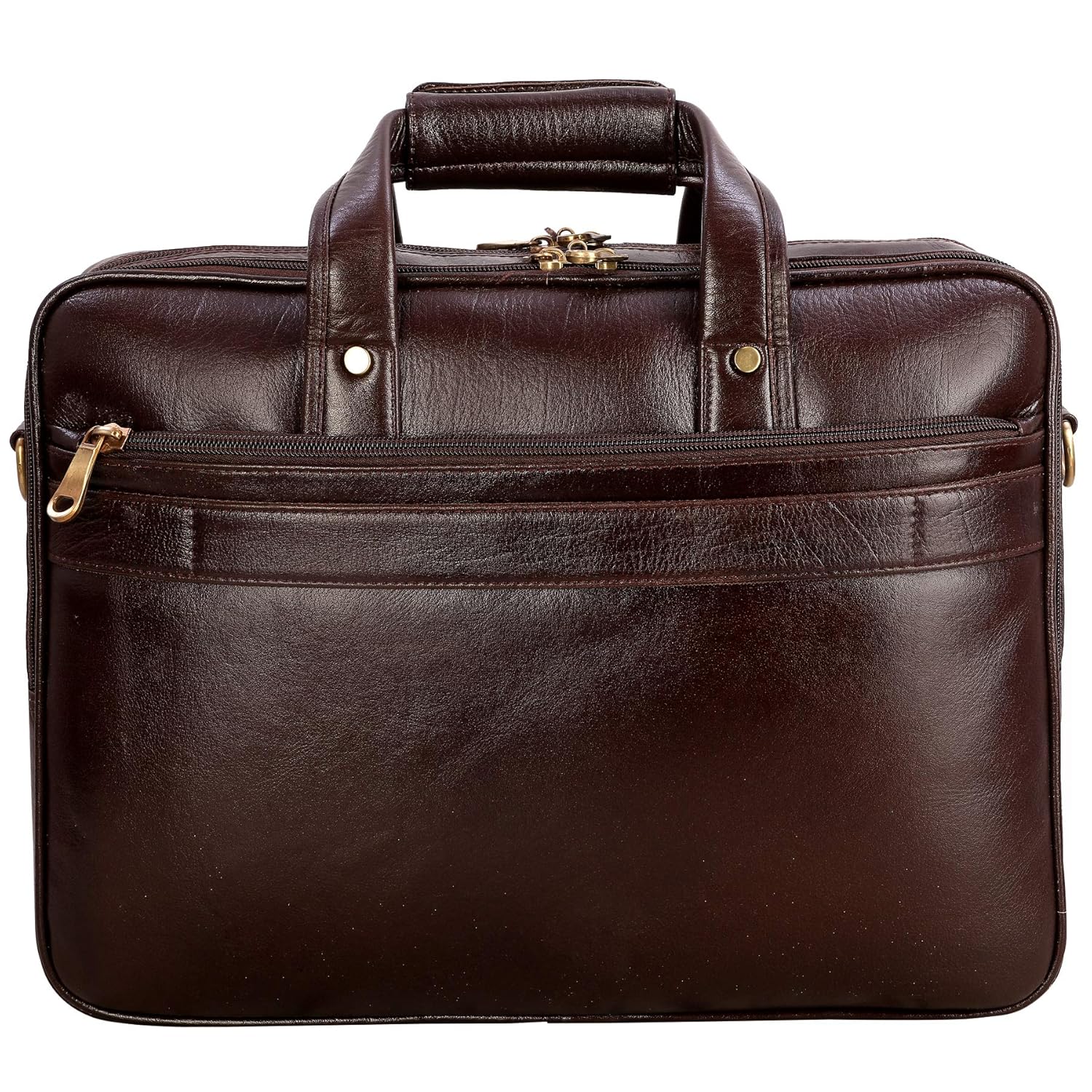 24 Litres Capacity | Dimensions: L-16 x H- 12 x W- 6 Inch Outer Material: Italian Leather | Inner Material: Fabric | Weight- 1.4 KG / 1400 GR. Made Of Genuine Leather | 2 Main Large Zip compartment & ONE Upto16 Inch Laptop Compartment Inside | 1 Chain Pocket & 2 Flap Magnetic Pocket’s At Front With Inner Mesh Pocket’s & 1 Zip Pocket At Back Lifetime Leather : It Will Never Ever Peel Off Like Non-Leather(Material) Product’s. 1 year against manufacturing defects & Accessories. An executive laptop bag with solid brass fittings in our natural grain classic leather. FREE – 3 Digit Numerical Combination Pad Lock.
