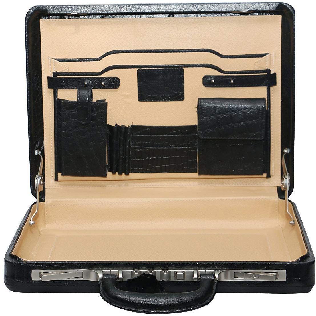HYATT Leather Accessories 17 Inch Men’s Leather Laptop Briefcases With High Security Italian Numerical Combination Lock