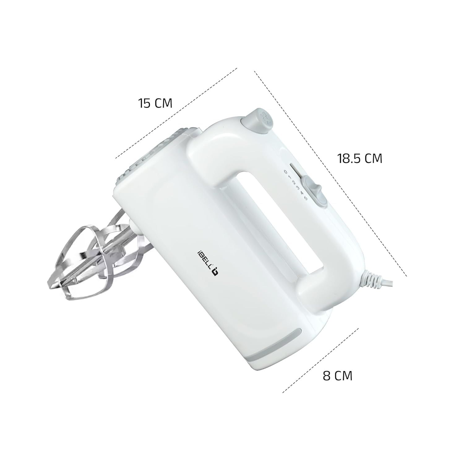 Be the first to review “iBELL WHISK350 Electric Hand Mixer – 350W with 5 Speed Control, Stainless Steel Beaters & Dough Hooks for Baking, Whipping & Mixing (White)”