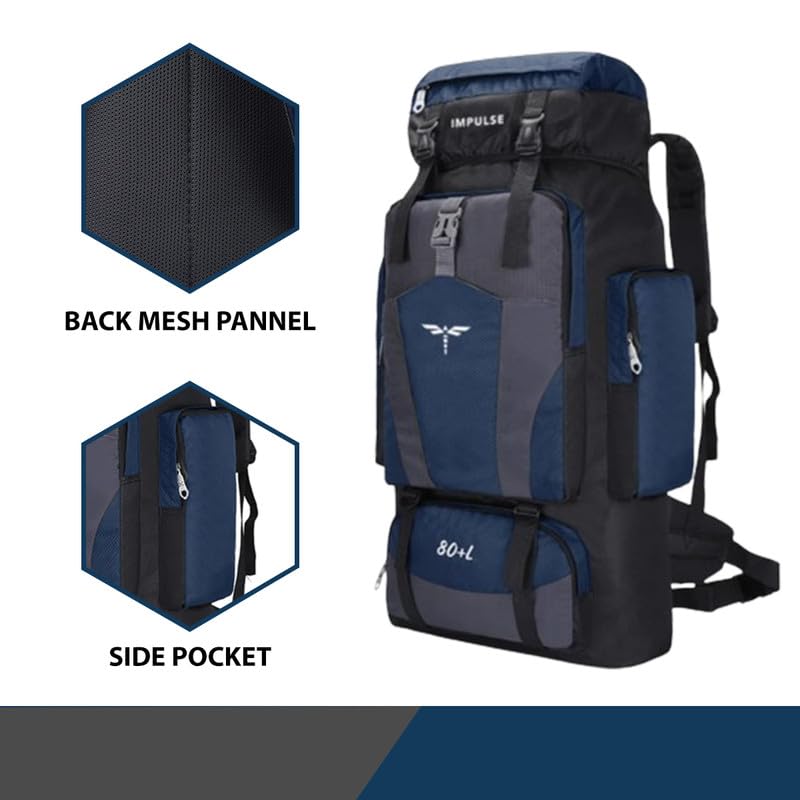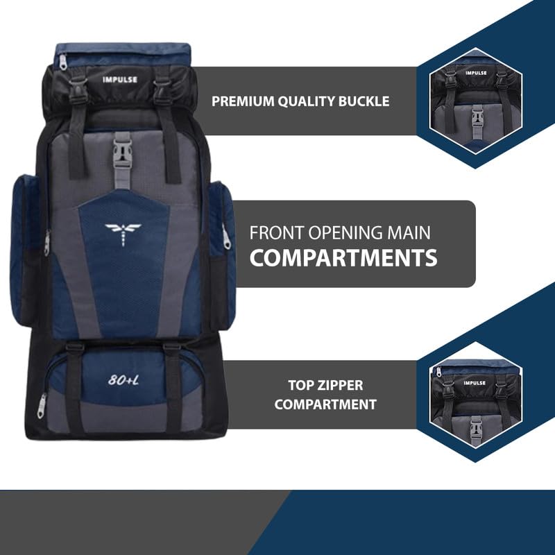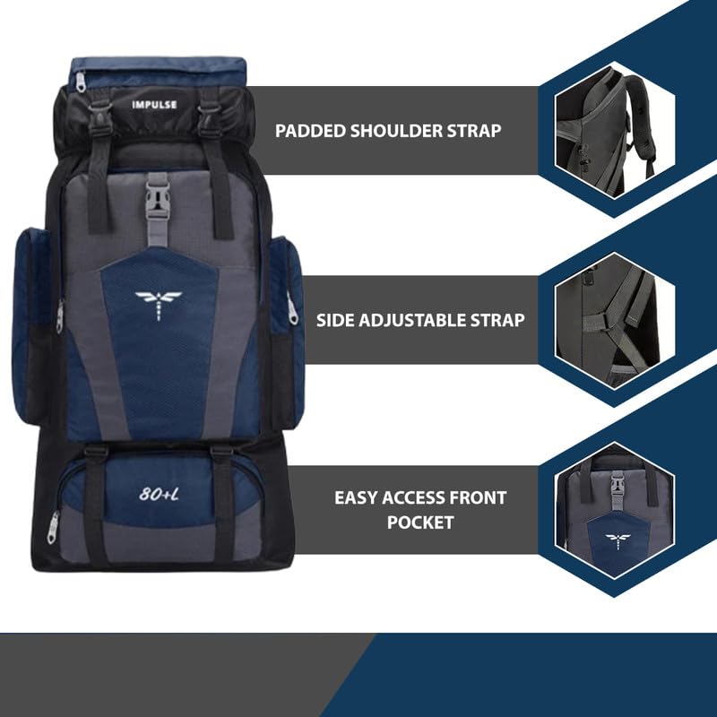 Impulse rucksack bags 75 litres travel bag for men tourist bag for travel backpack for hiking trekking Bag for men camping thames blue bag with 1 Year Warranty