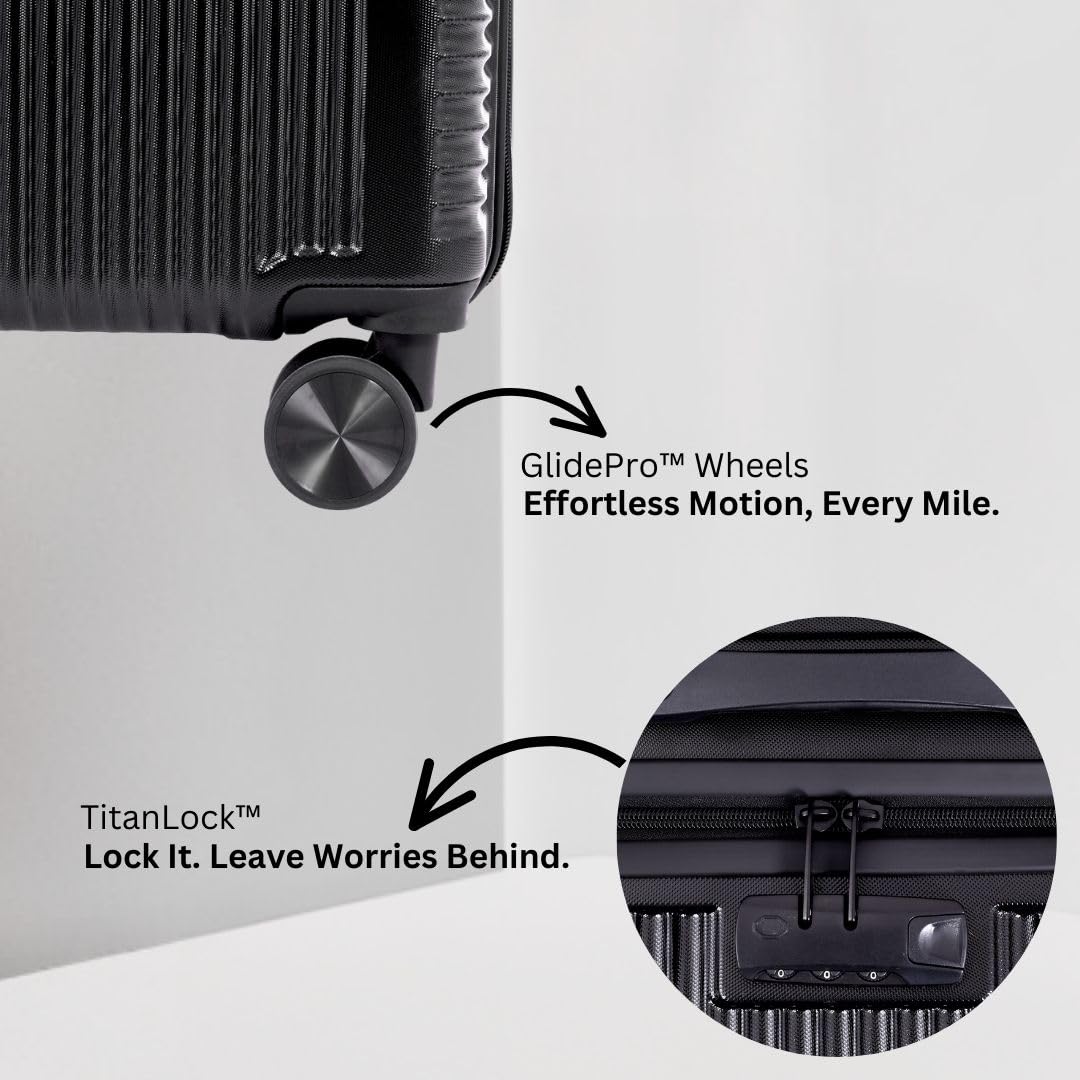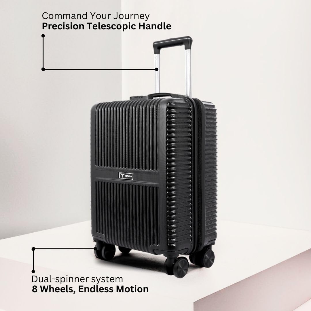 Impulse Urban Polycarbonate (PC) Set of 3 (Cabin + Medium + Large) Trolley Bag for Travel Small Cabin Check in, Luggage Bag Travel Hard Case with 8 Wheels 360 Degree Wheeling System (Black)
