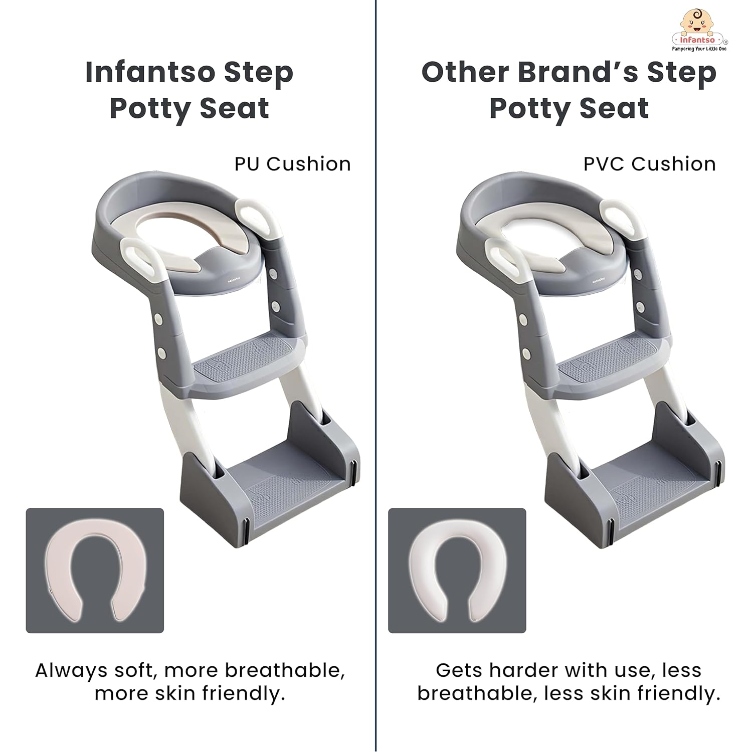 🧸 Soft PU Seat Cushion: More comfortable, breathable, and skin-friendly than PVC seats for a soothing potty experience.