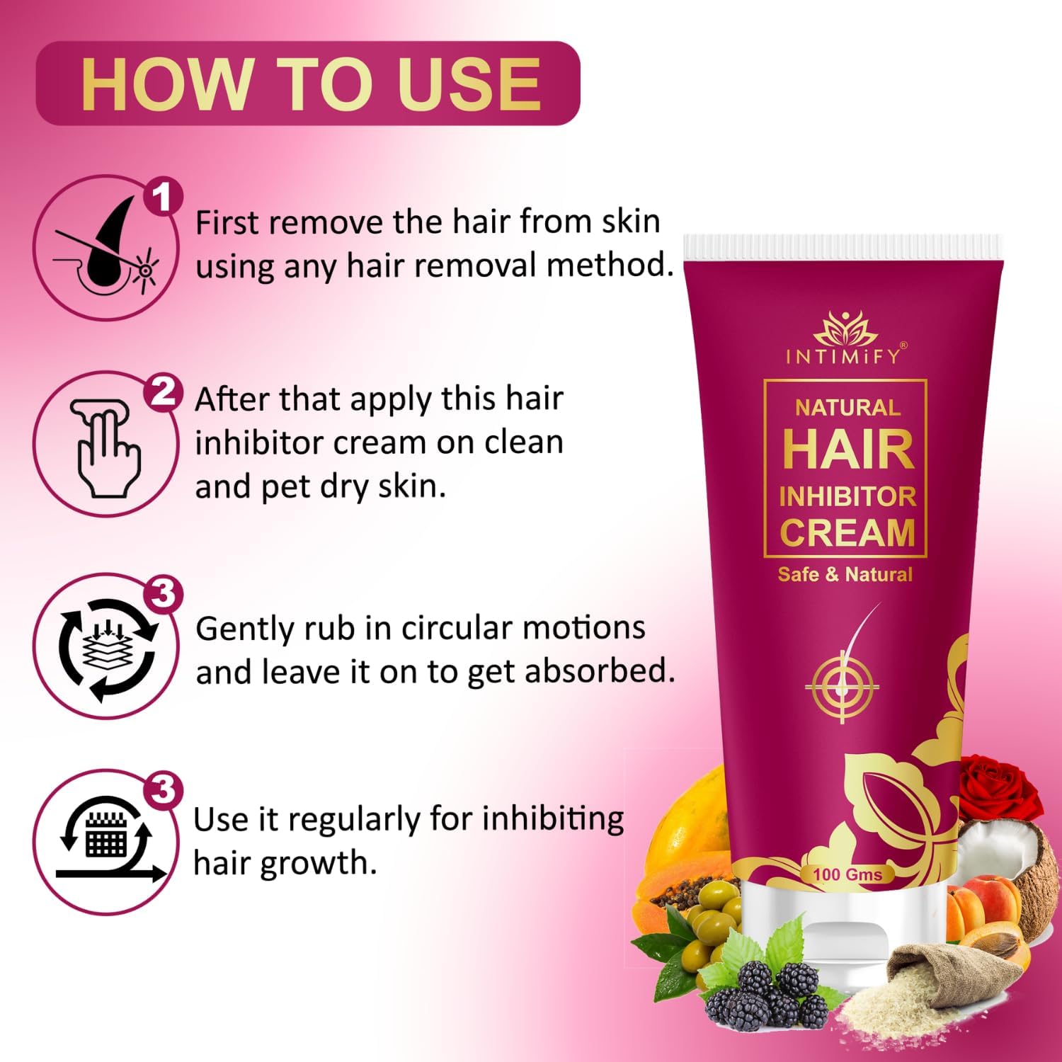 INTIMIFY Hair Inhibitor Cream, Hair Inhibitor Permanent, For Women & Men, Suitable for Facial Hair, Chin Hair, Arms and Legs (100 Gm)