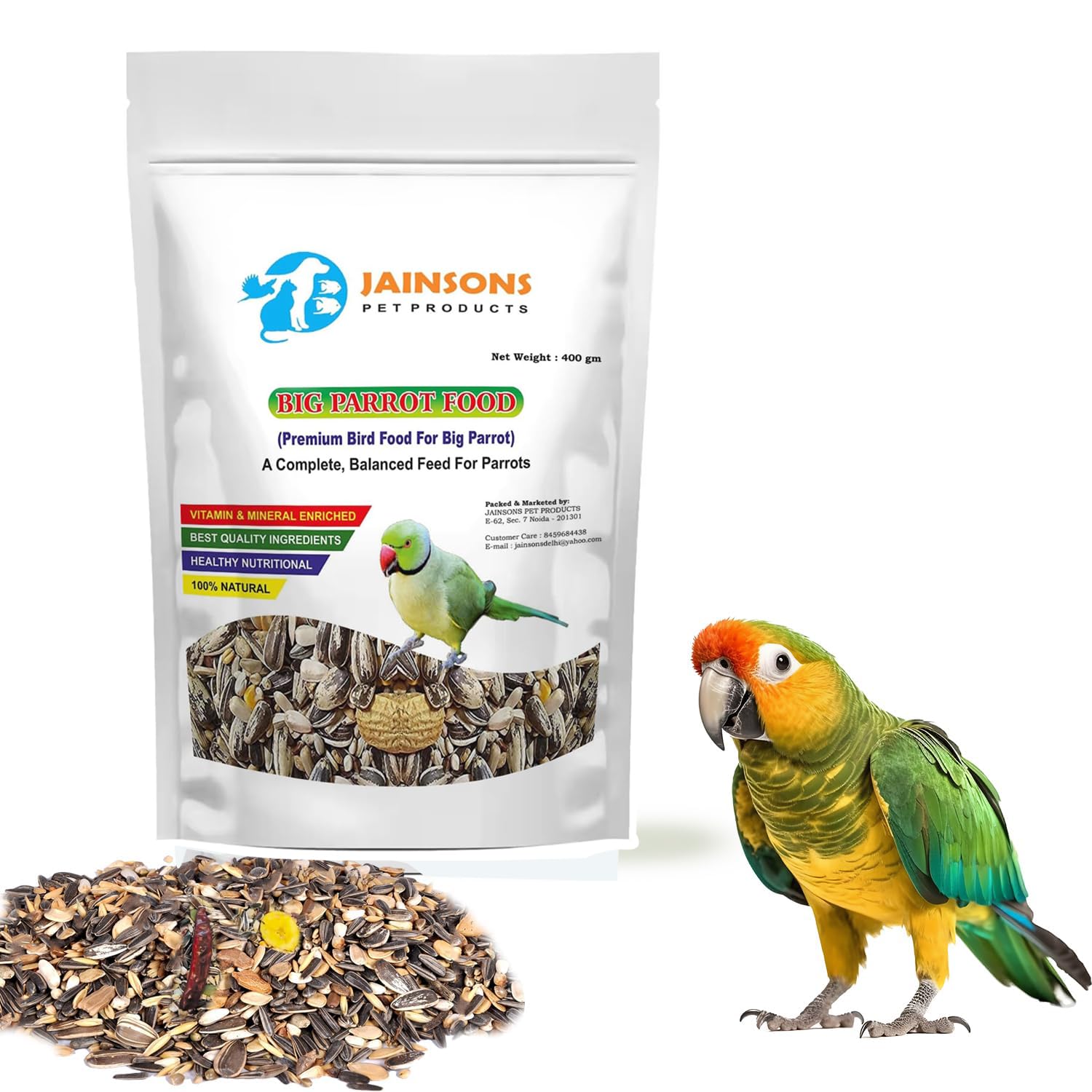 Jainsons Pet Products Bird Food for All Birds 400g – 11 Seed Mix for Budgies, Parrots, Sparrows | Small Bird Food Feeder Bowl Friendly | Ideal for Balcony Feeders