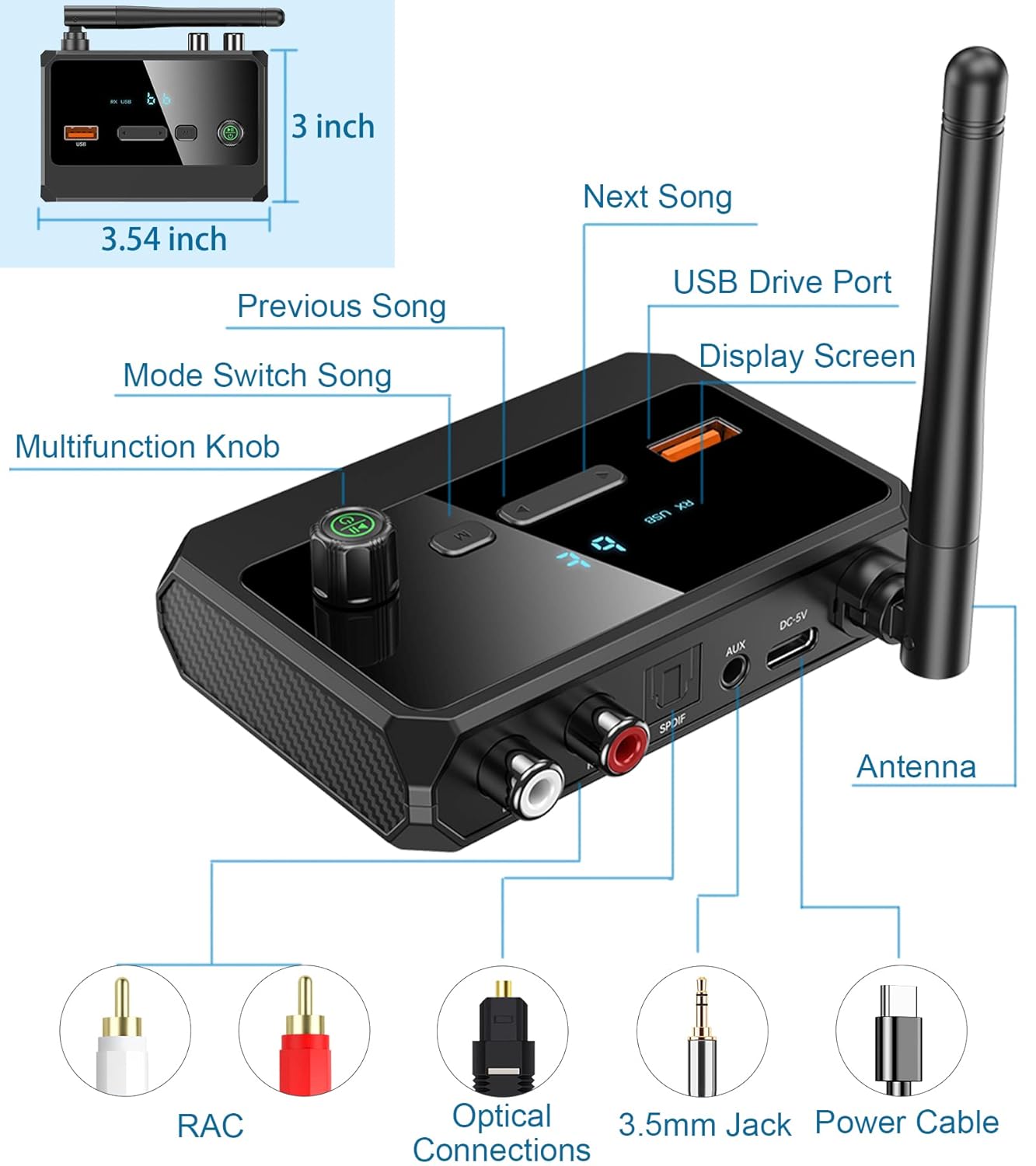 BLUETOOTH 5.3 RECEIVER: The Bluetooth adapter for old receiver has the latest Bluetooth 5.3, faster reception speed, higher security, and reliability. Also equipped with the latest wireless codec for HIFI HD sound performance, the LCD screen displays the music mode and volume, and provides a clear guide for you.