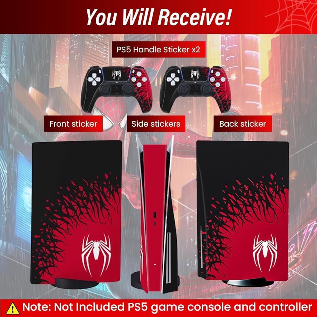 Khushi Dcor RED White SP Man UV 3M Vinyl Sticker Decals for PlayStation 5 Disk Version Console and Two Dual Sense 5 Sticker Skins Black PS5 Skin Console and Controller Design [Video Game]