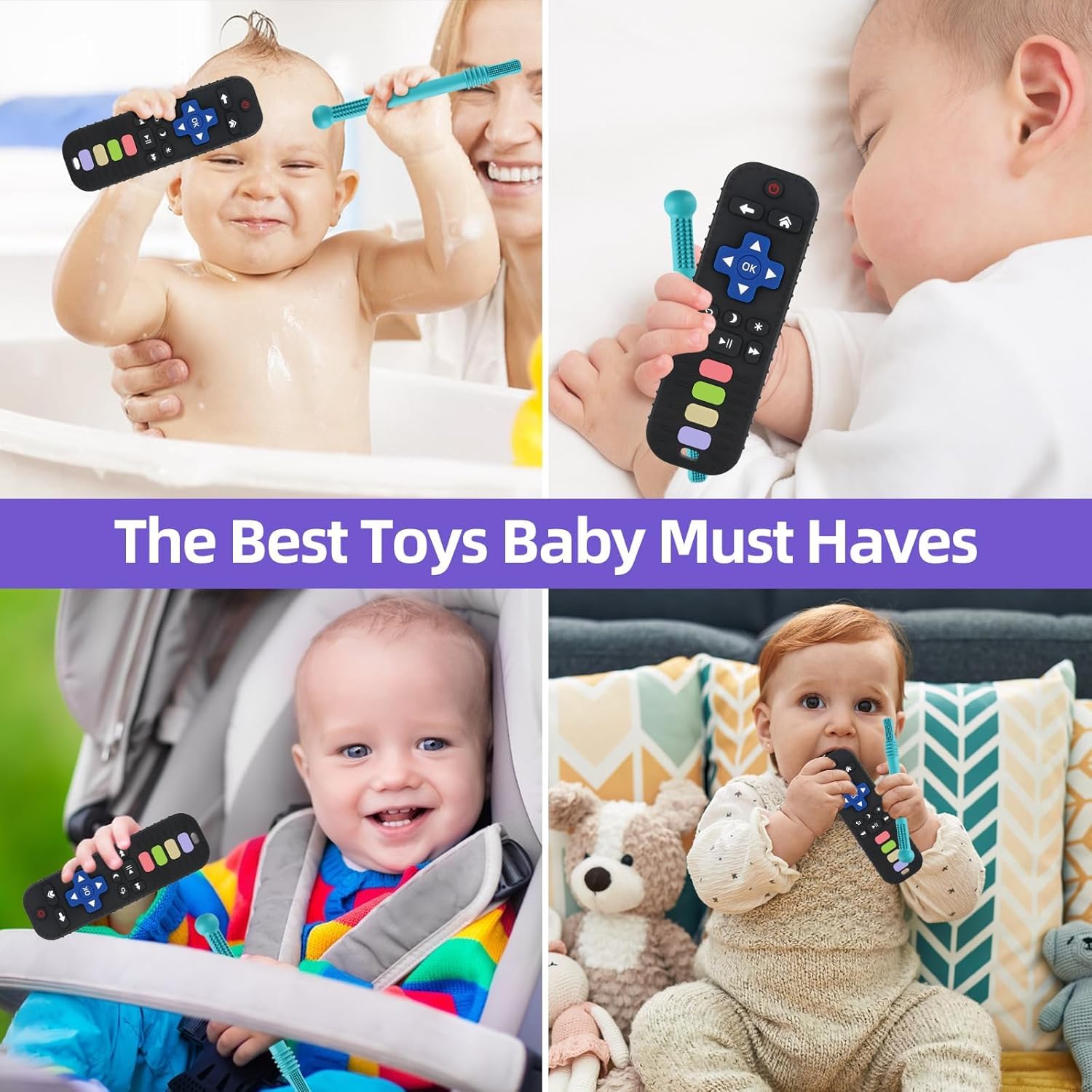 BEST TEETHING RELIEF for BABIES 0-6 6-12 12-18 MONTHS : Silicone teethers sticks for babies have 2 unique textured design to calm your baby’s discomfort! And the vivid colors of remote teether for baby with little bumped edges design add to soothing little one?s sore gums. Great for putting in the freezer to provide even more pain relief! These baby toys teething effectively reduce baby to put finger, spoon and toothbrush in his or her mouth to gnaw on