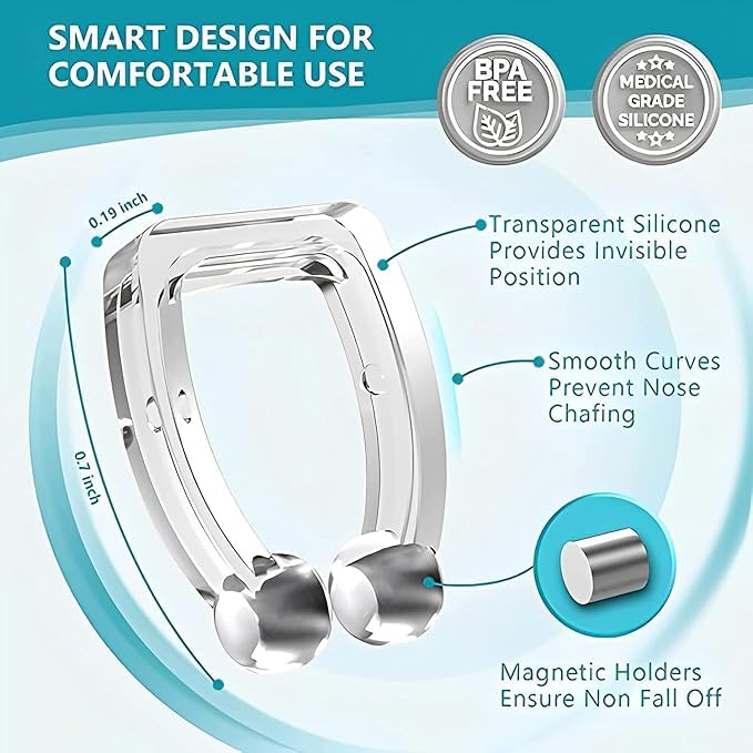 Say Goodbye to Snoring with Magnetic Anti-Snore Devices: Experience the magic of restful sleep with our innovative magnetic anti-snore devices! These smart magnets gently apply pressure on the septum, opening up your nasal airways for optimal airflow. The result? A peaceful, snore-free night’s sleep!