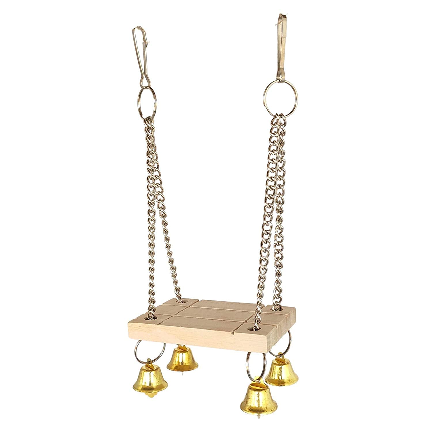 Bright, cheerful bells and colors stimulate curiosity and happiness. Add warmth and activity to your bird’s daily life with this handcrafted KSK wooden swing toy.