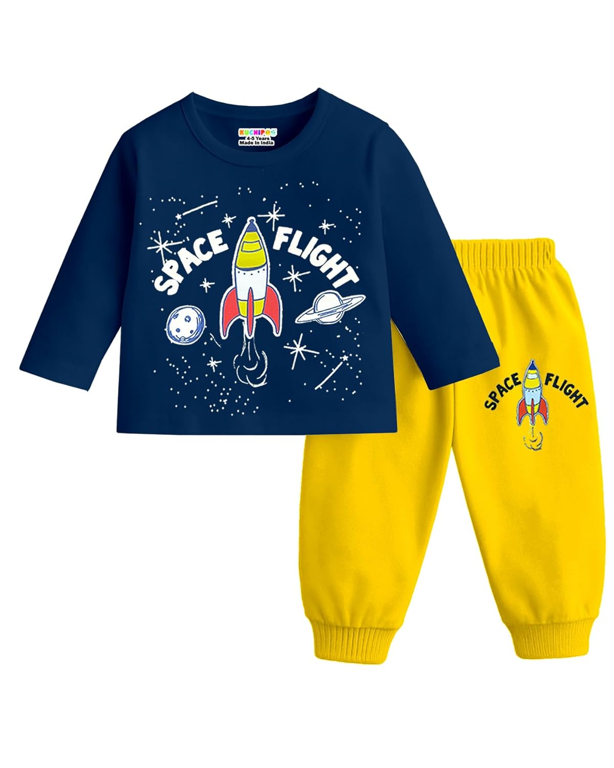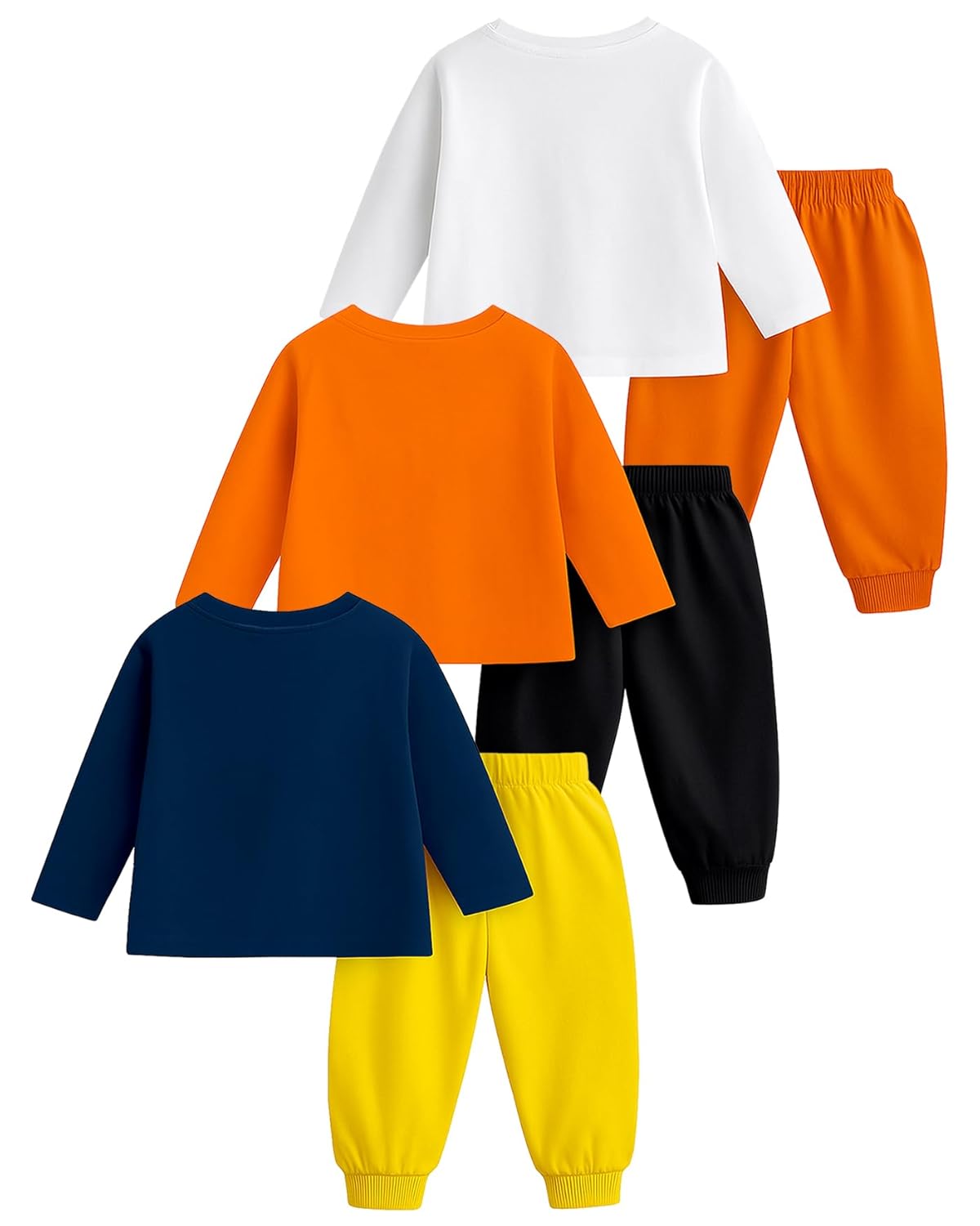 Kuchipoo Boys Regular Fit Cotton T-Shirts and Pyjamas Clothing Set-Pack of 3