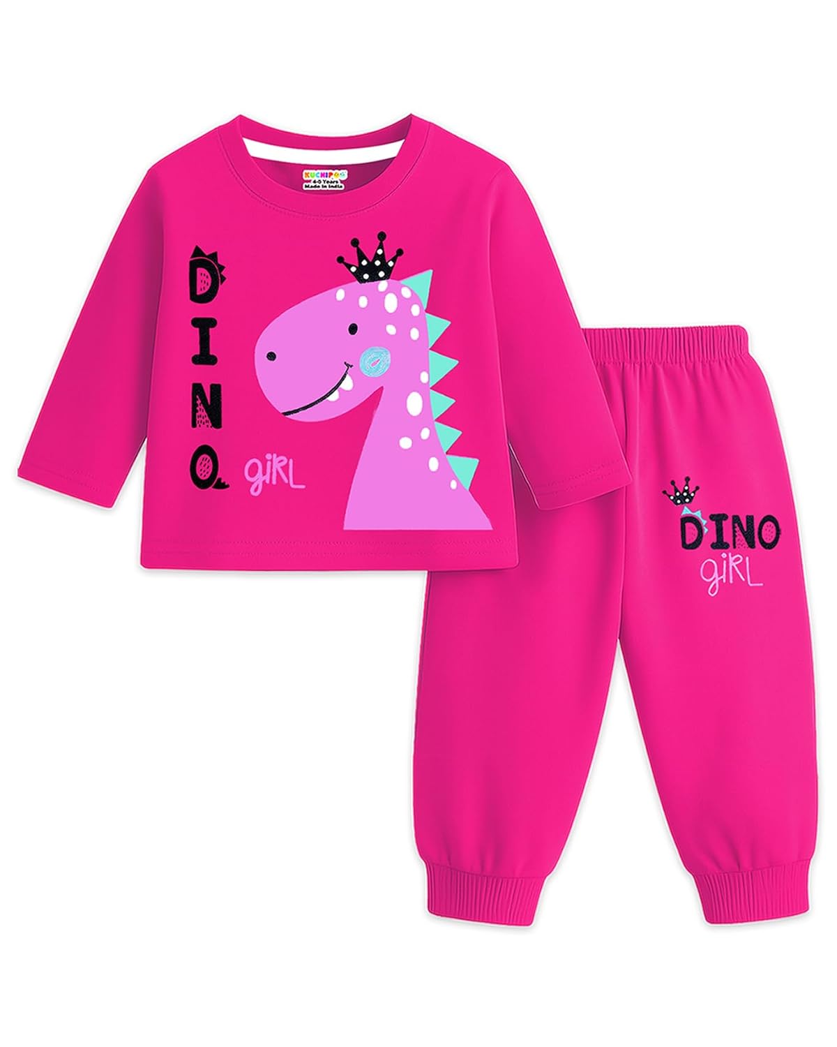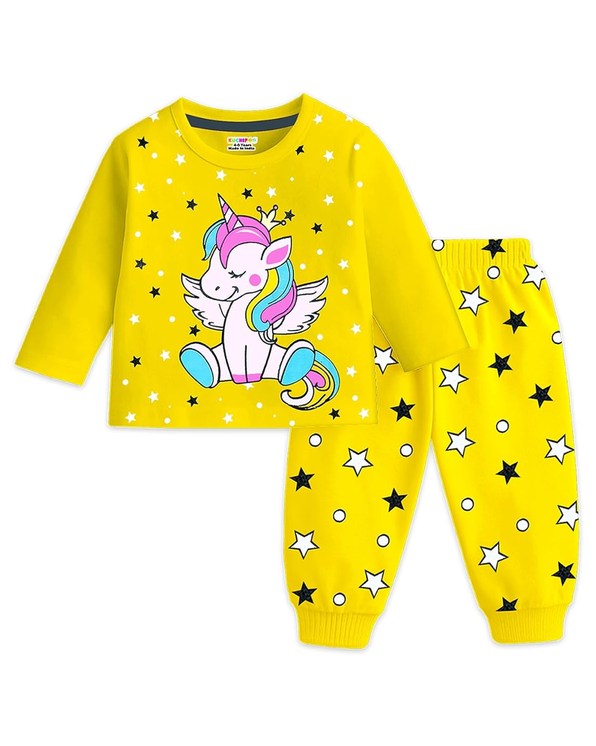 Kuchipoo Girls Regular Fit Cotton T-Shirts and Pyjamas Clothing Set